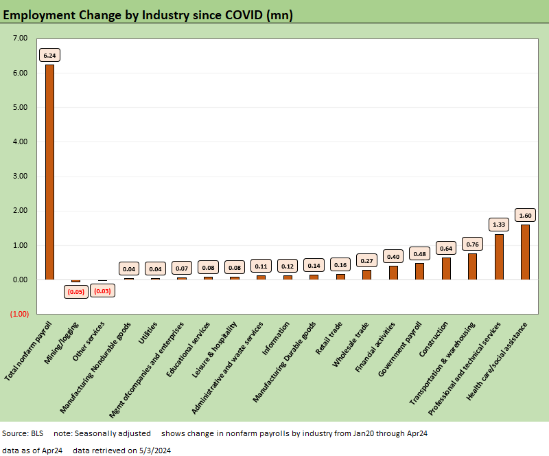 As covered above, the latest release adds to the growth in Health Care and Social Assistance driven by the demographic trends of aging population as well as more affordable health care that makes treatment even possible.