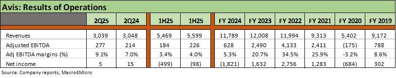 Avis has delivered a steady financial performance in 2025 that still features considerable volatility from the 4Q24 earnings report in early Feb 2025 through the 2Q25 numbers. The critical 3Q25 peak travel season is now underway.
