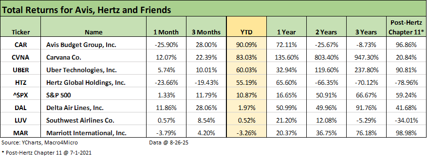 For those who did not catch the 2Q25 earnings call, Avis is now looking to shift the discussion back to the broader growth opportunities across integrated mobility and the expansion of service revenue streams in high profile areas such as “mega fleet management” (notably EVs and AVs). The focus was on the Waymo partnership in Dallas and how that could expand.