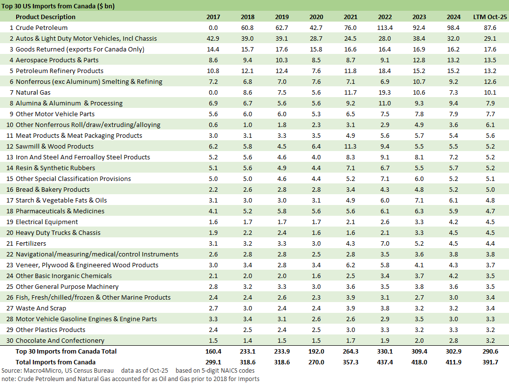 Trade Exposure: US-Canada Import/Export Mix 2024 2-7-25