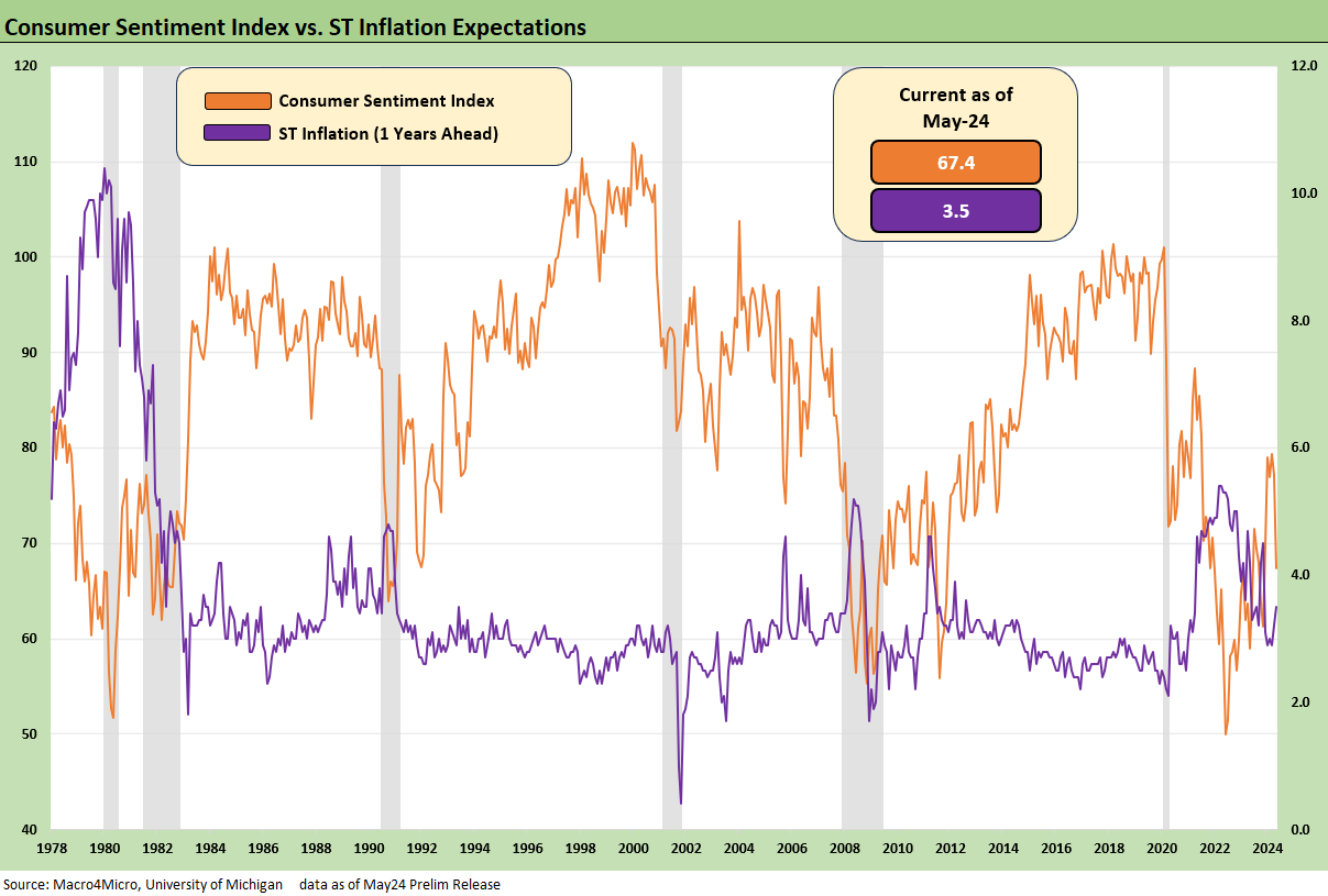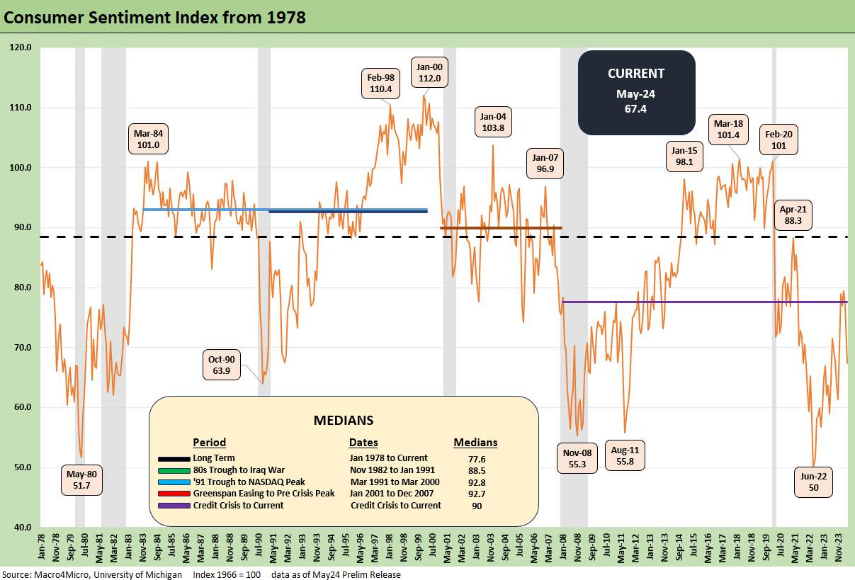 We won’t go down that rabbit hole here, but the divergence of sentiment across political parties is getting stranger in a political environment that passed 1968 and is heading toward 1864. The common theme for May 2024 is that all the sentiment numbers for all parties are all going lower. There are no sure things for any party in this mess.