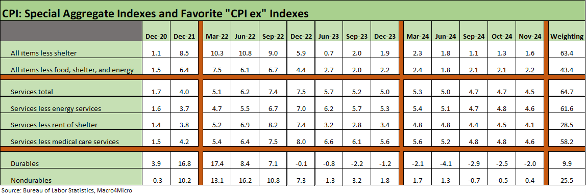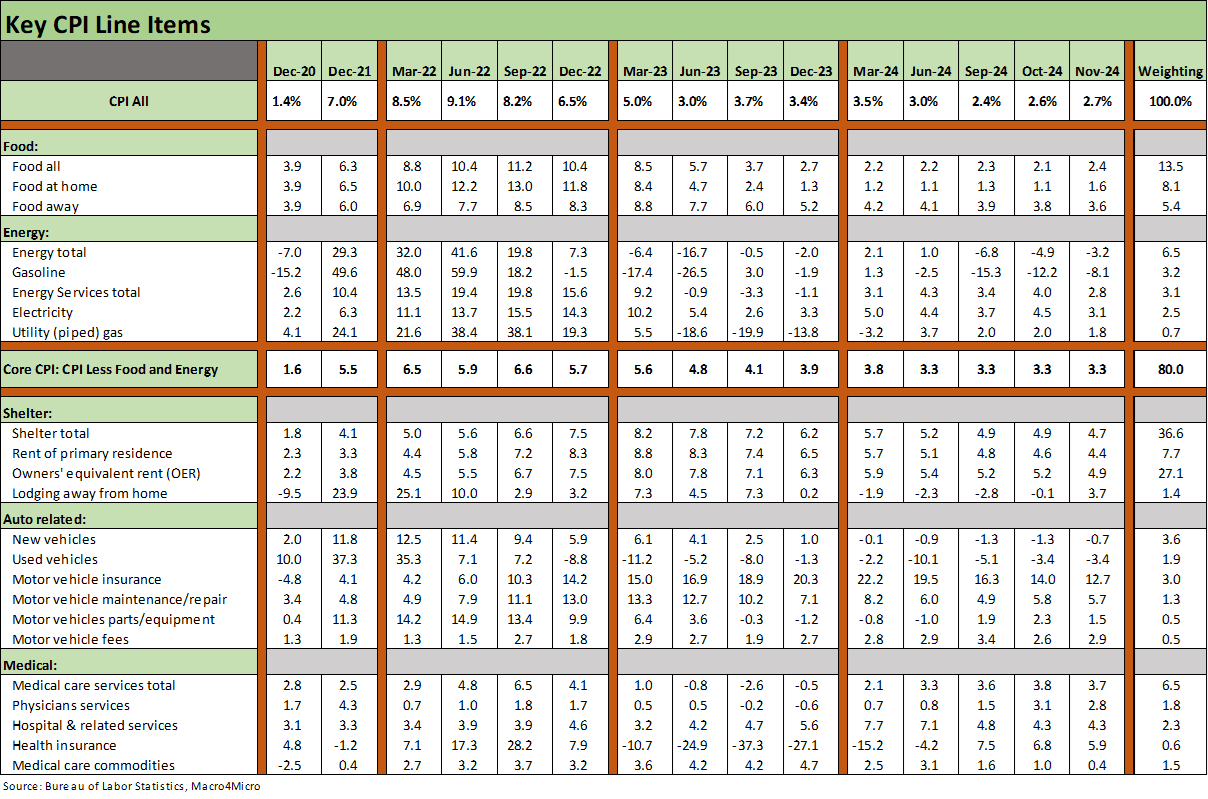 The “Services less energy” YoY metric ticked slightly lower sequentially from +4.8% to +4.6 while “Services less medical care” also declined from +4.8% to +4.6%. Energy and Medical Care will both be on the policy front burner in 2025 with the odds mixed in energy and healthcare alike. For energy, the questions are “Will Trump get oil supply higher?” and” Will Trump slap tariffs on the massive base of crude oil from Canada?” In medical care, the questions include “Will Trump repeal the Affordable Care Act with his small majority in the House and Senate? Will he have a plan or just a concept?” The other question in health care revolves around RFK Jr and can best be summarized as “Huh?”
