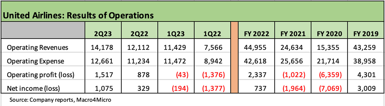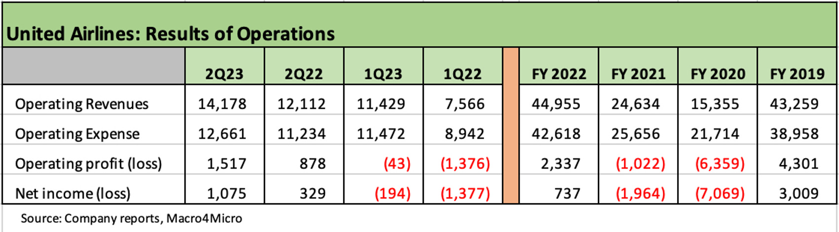 UAL has posted a mix of record numbers in 2Q23 that saw profitability exceed the peak pre-COVID 2Q19 period with strong support from soaring international profits.
