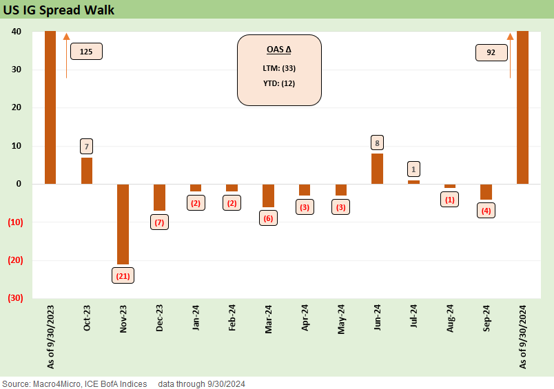We also look at the credit spread walk from 4Q23 through 3Q24 as credit markets avoided any lasting selloffs in 3Q24 despite the early August noise.