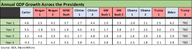 Biden ranks #7 and is tied with GW Bush 2. The banner year of 1984 was one for the ages in Reagan 1 while 1998 in Clinton 2 took #3. The #2 spot is held by Carter in 1977. If you need a measure of what a “great year” or “good year” looks like, we see 3 of the best years in double digits. We see 5 years in the “best of” with 7% or 8% handles. We see 3 “best years” with 5% handles. In other words, 5% is bottom quartile among this collection of best years. The full collection of annual growth numbers was in an earlier table above.