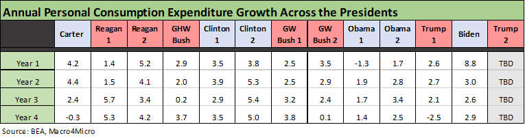 The PCE for Biden in 2021 obviously comes with a major asterisk with such a lofty number tied to the “great reopening” after the vaccine and pent-up demand was unleashed. Trump’s 2% handles before COVID in 2017 to 2019 had no excuses and most certainly were not impressive. Just scan back across time for objective evidence those were low.
