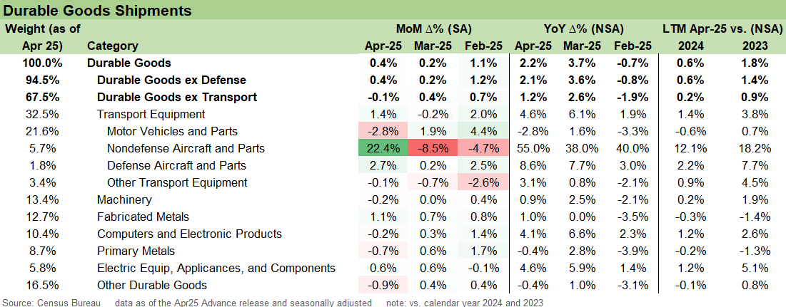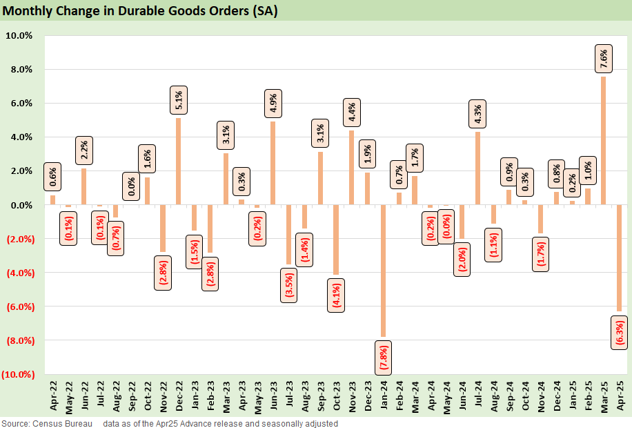 The 2025 results for durables to start the year reflected an incrementally positive trend in the pre-trade war numbers, but the manufacturing sector is clearly on edge given the degree of disruption that could unfold along finished goods and supplier chains under current trade war and bad blood backdrop.