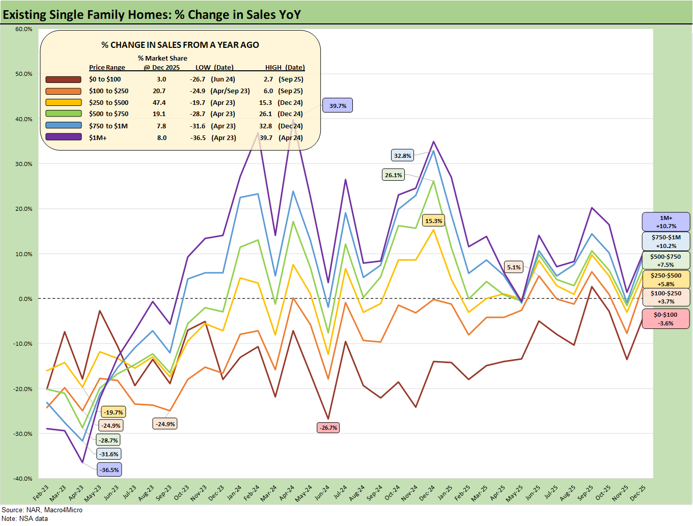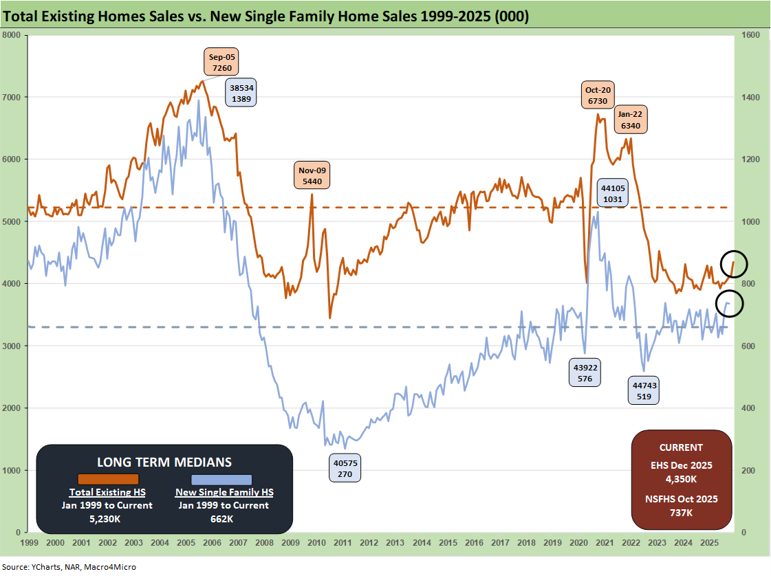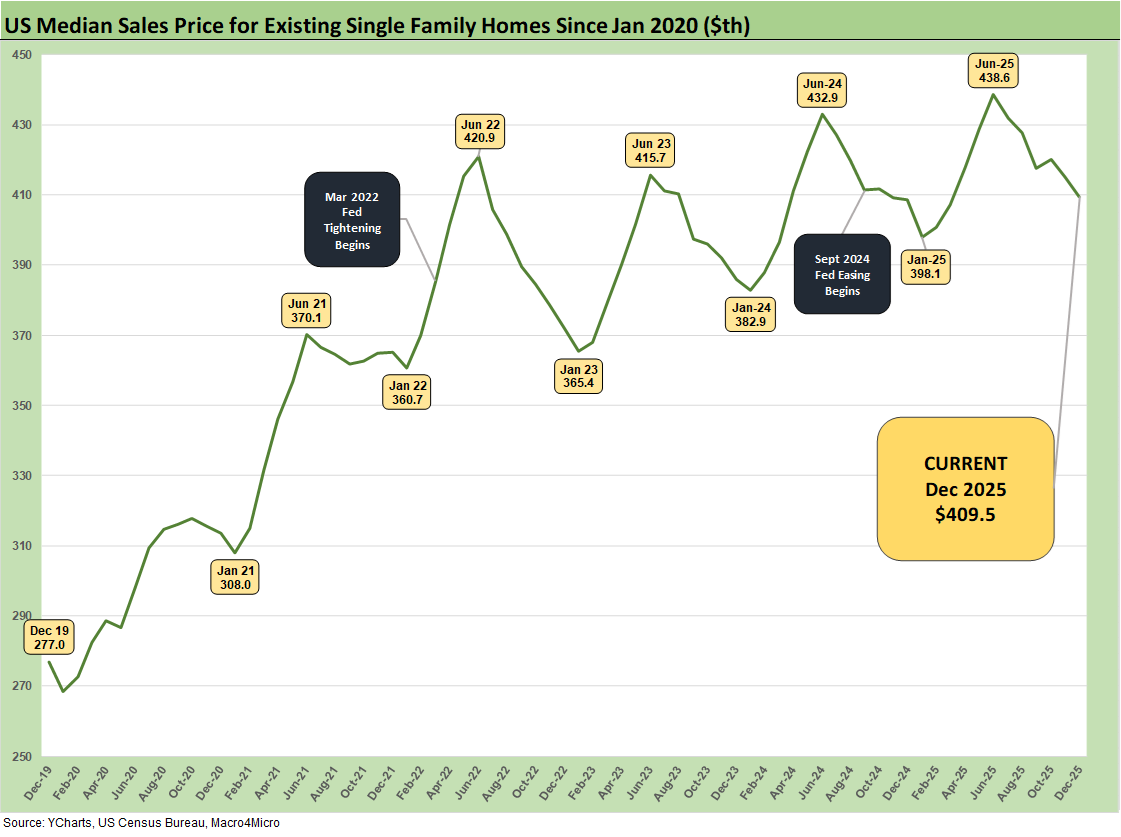 The above chart updates the median price for existing single-family homes at $409.5K after June 2025 hit a record $438.6K. The median price in Dec 2025 is dramatically above the $308K level back in Jan 2021 and $277K in Dec 2019 when mortgage rates were in a different zip code.