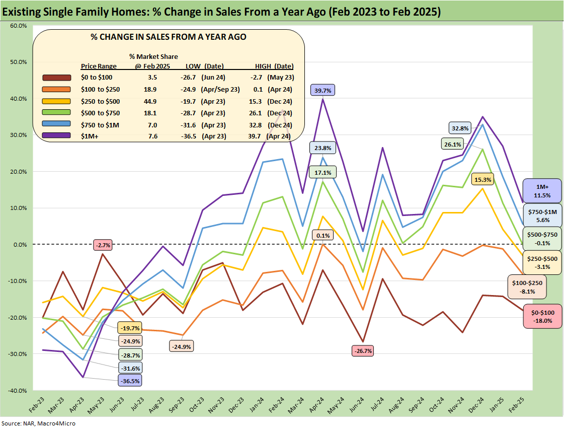 The above chart updates the monthly existing home sales across the timeline from Jan 2022 through Feb 2025. The market is a long way from the mid-6 and high 5 million handles of 2021 and then into early 2022 when many homeowners refinanced, and new buyers locked in low mortgages. ZIRP ended in March 2022 and then the UST migration began.