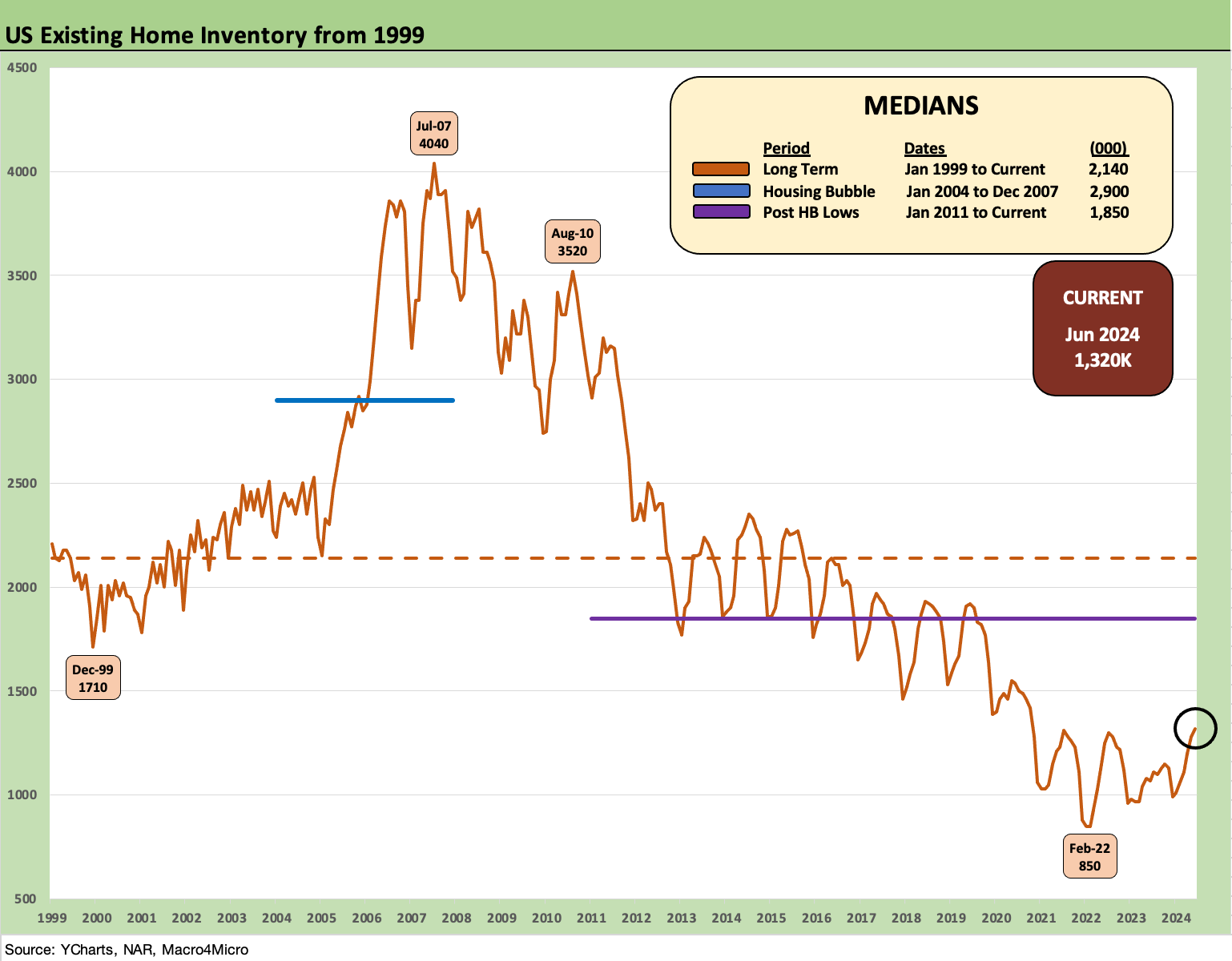 The existing home sales inventory climbed to 1.32 million units with the peak selling season underway, but the higher prices and mortgage backdrop are not turning and transacting at a pace to keep up. Total existing inventory reached 4.1 months at current selling rates which is the first time over 4.0 months supply since 2020. That was an eye-catching headline. Single family only inventory weighed in at 3.8 months in June, up from 3.5 months in May and is higher than the past year.