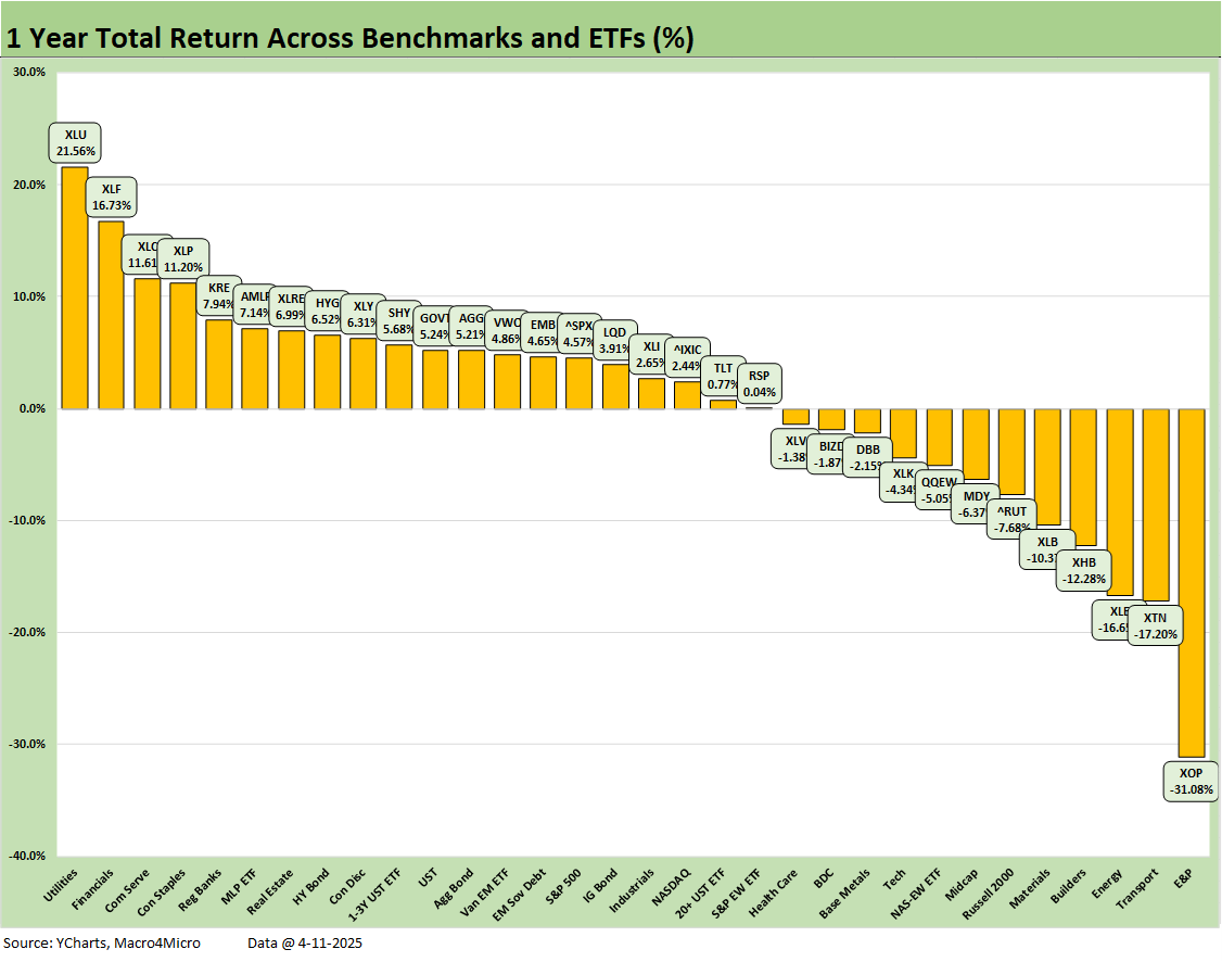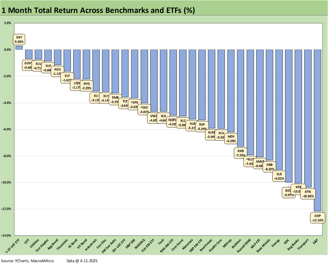We already looked at the 1-week mix in Mini Market Lookback: Trade’s Big Bang (4-12-25), and we at least see the rebound in tech heavy ETFs and benchmarks along with Industrials (XLI) and Financials (XLF).