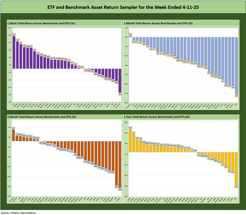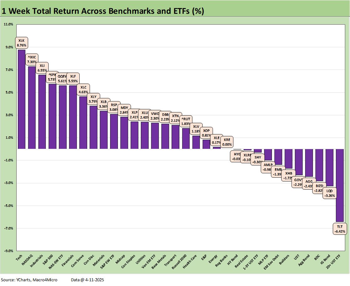 The week was a happy one for equities in relative context but ugly for debt. The equity rally does not change the facts of a brutal trailing 1-month and rolling 3-month performance or the realities of the turbulence ahead from the tariffs in place, those on pause, and those in the queue.