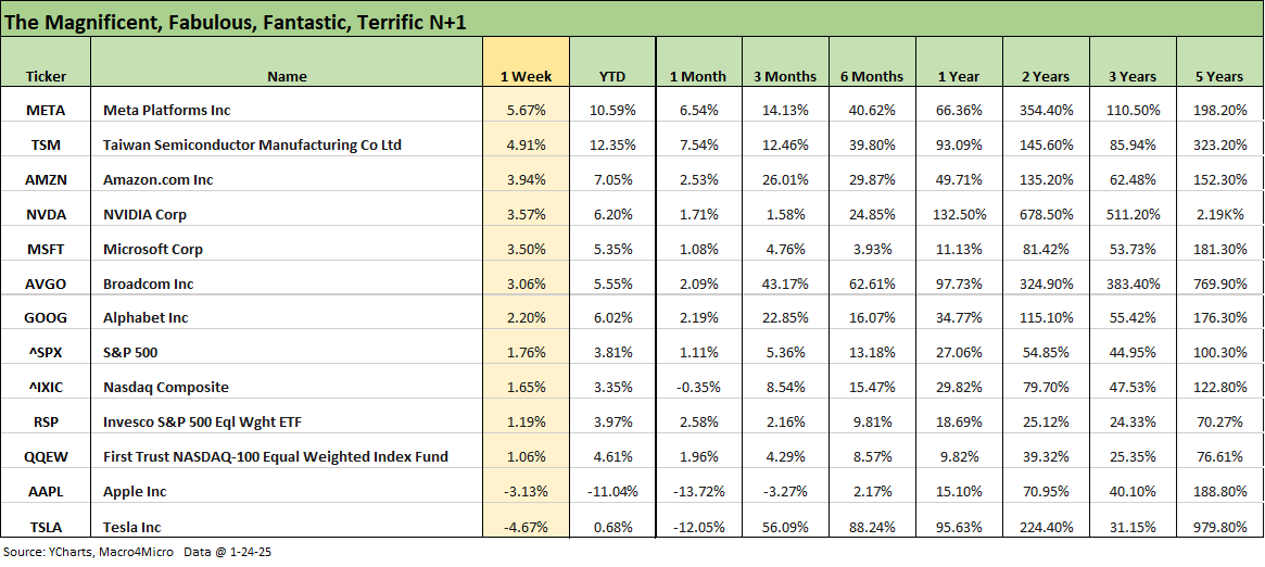 We looked at the details of the tech bellwethers in our earlier Mini Lookback (see Mini Market Lookback: Policy Blitz Formation 1-25-25). In terms of the correlation with the UST action, the Mag 7 growth stories get swept up in the inevitable discount rate debates on valuation and how that ties into longer term rates, but the main event is still revenue and earnings growth. We will see 5 of the 7 report this week as noted earlier.