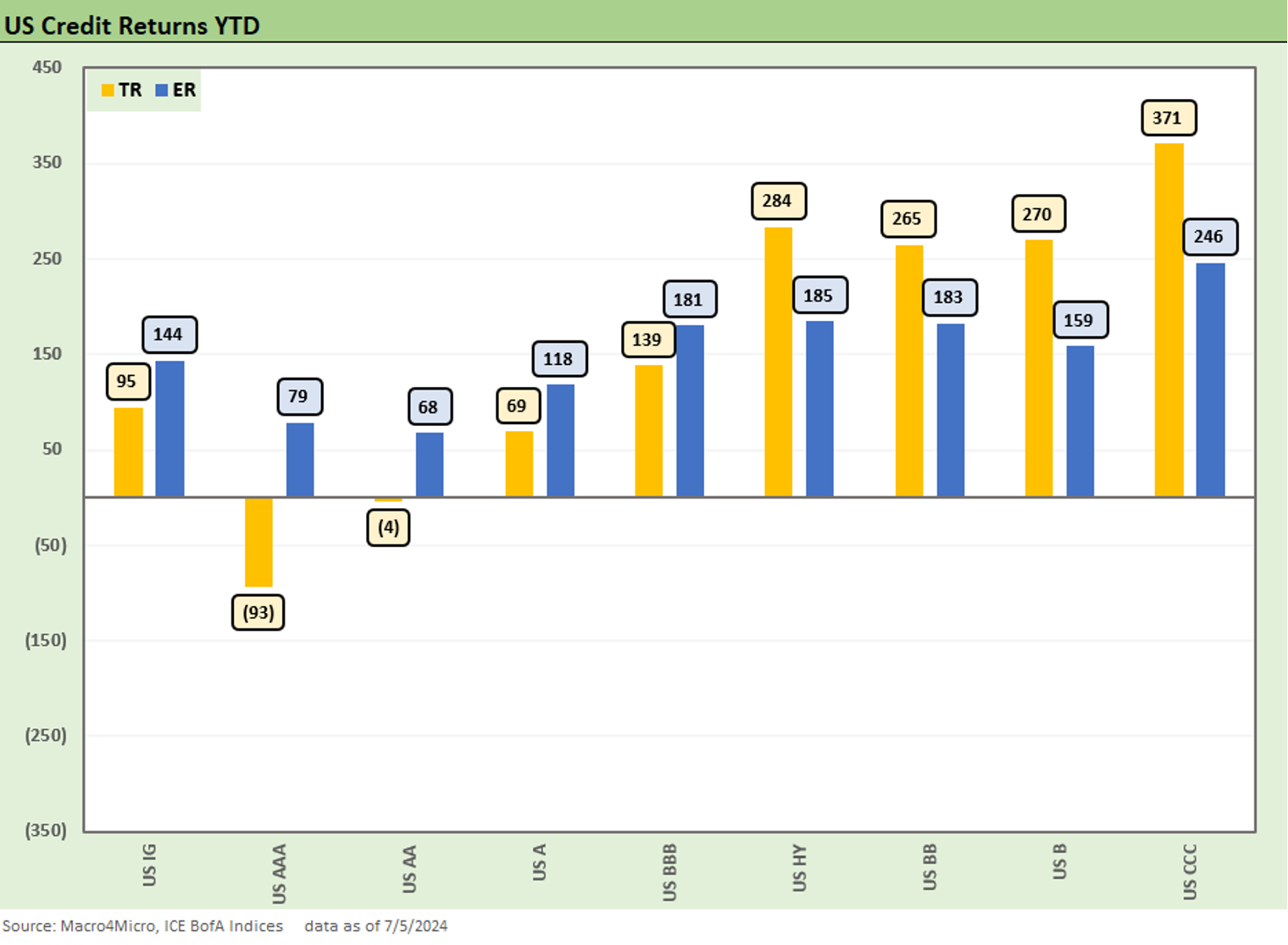 The BBB vs. BB tier YTD excess returns are almost in a dead heat as we enter a period where the range of potential policy outcomes remains very wide in terms of how they would flow both into macro risks and micro-level industry effects (many negative).