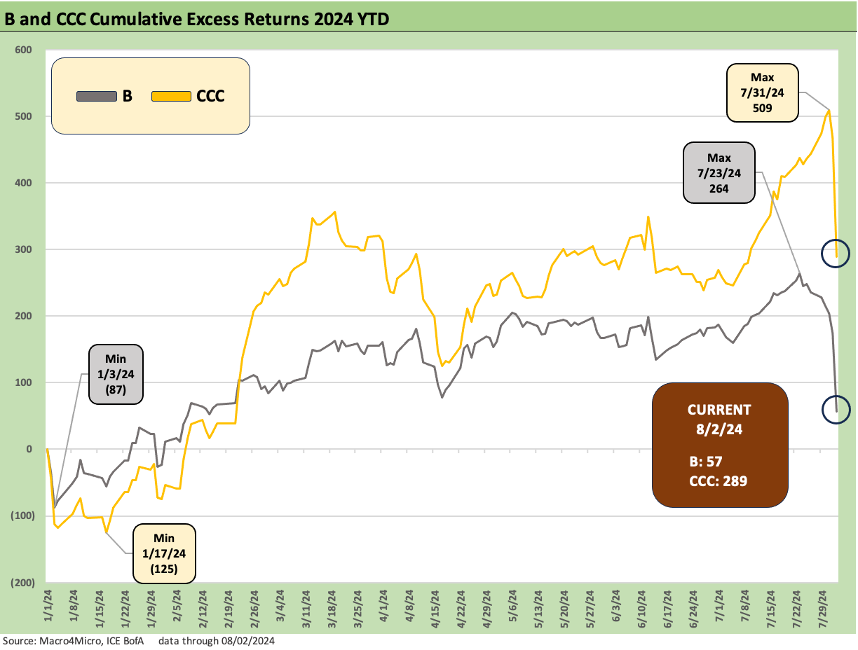 The B to CCC tier differential is a topic we discussed at length in a detailed commentary a few weeks back (see The B vs. CCC Battle: Tough Neighborhood, Rough Players 7-7-24). Our view has not changed since then.