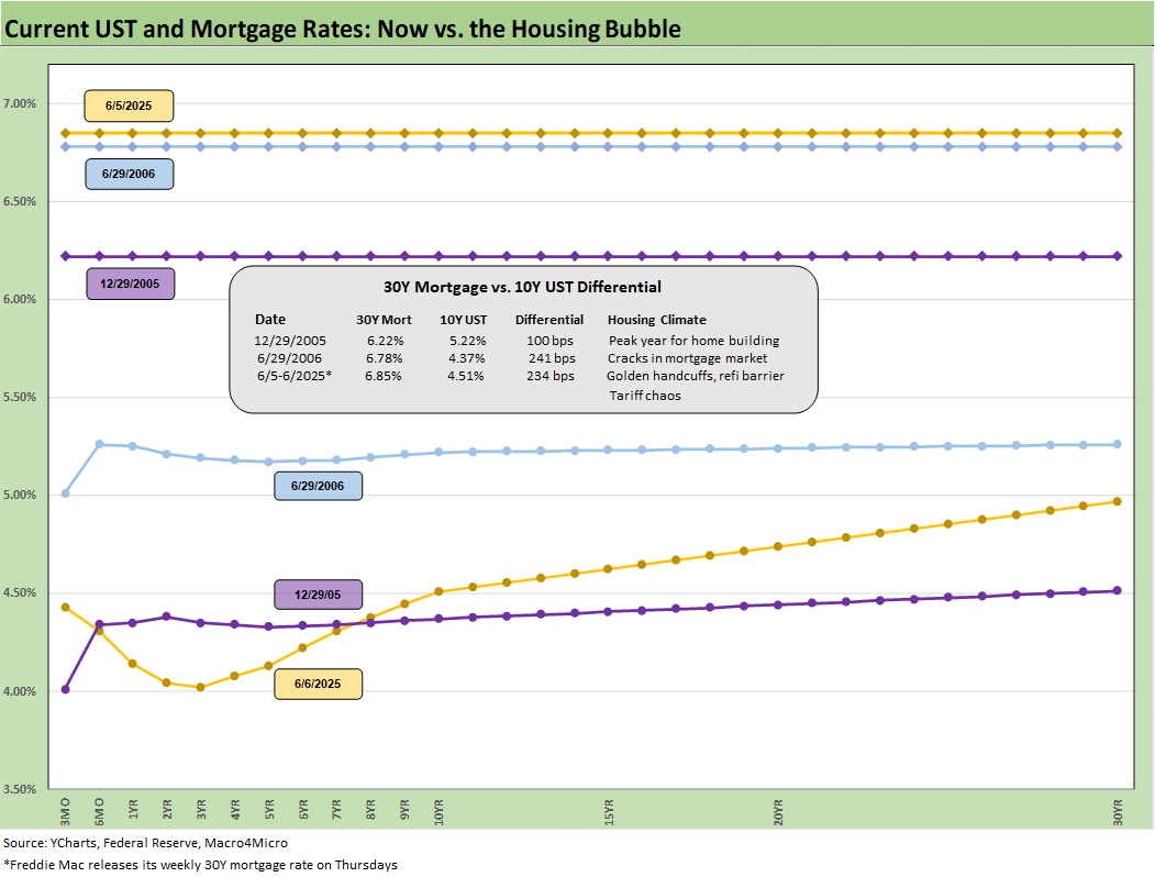 The above chart is one of those replay slides we update each week. This one posts the UST curve for this past Friday and the Freddie Mac 30Y Mortgage benchmark rate (noon Thursday release). We include two useful historical periods including the peak homebuilder year end of 2005 and mid-2006 when RMBS quality concerns were catching headlines as the housing bubble was peaking.