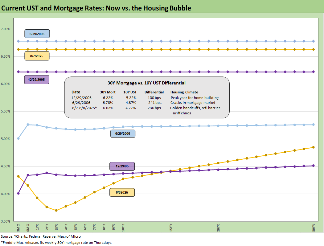 The above chart is one of those replay slides we update each week. This one posts the UST curve for this past Friday and the Freddie Mac 30Y Mortgage benchmark rate (noon Thursday release). We include two useful historical periods including the peak homebuilder year end of 2005 and mid-2006 when RMBS quality concerns were catching headlines as the housing bubble was peaking.