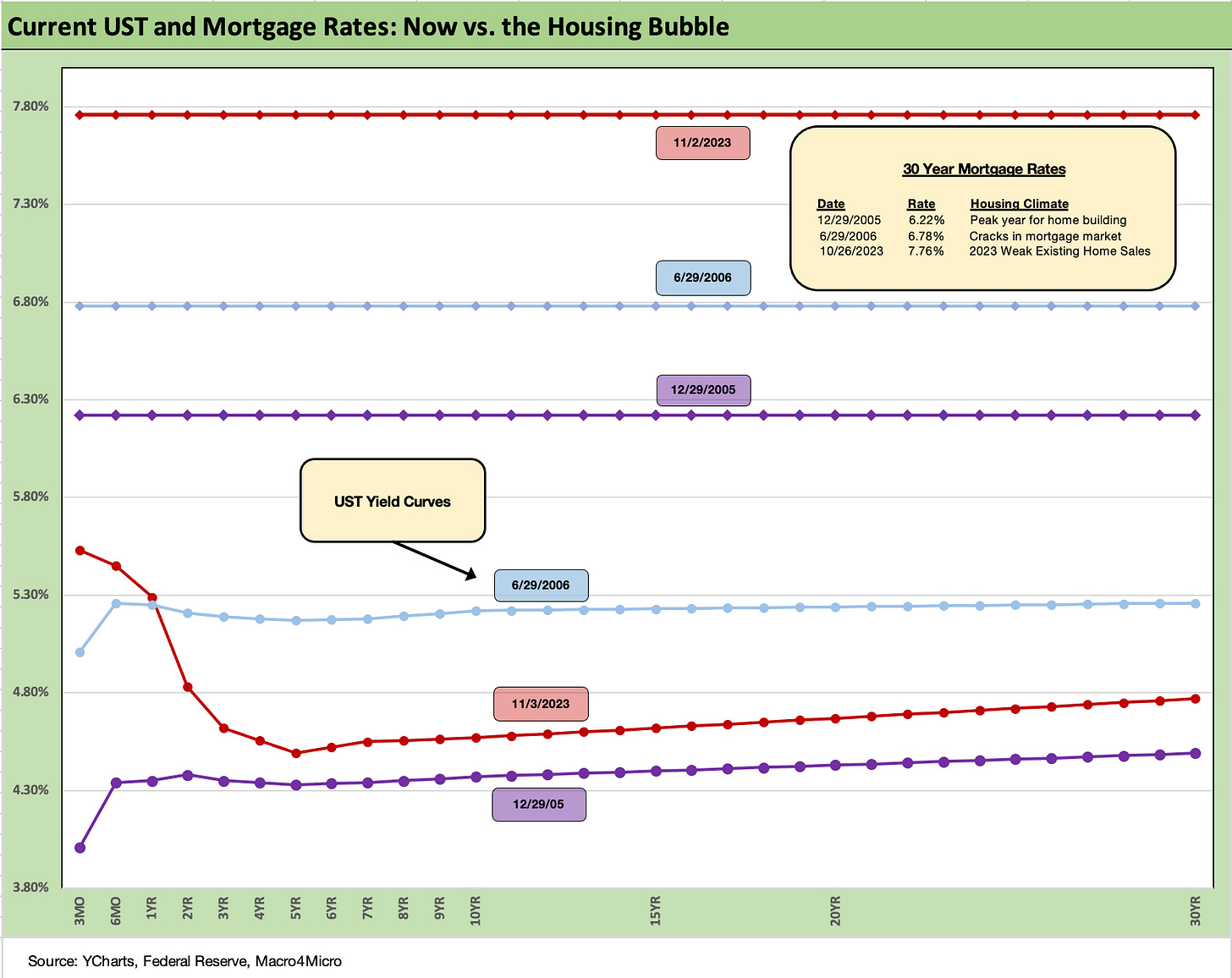 It is notable that the current UST curve is now well above the end of 2005 in 10Y UST but below the intermediate and long end of the UST curve seen in mid-2006. Despite that UST configuration, the 30Y mortgage levels of 2023 are well above 2006 and were pulling away before this latest rally.
