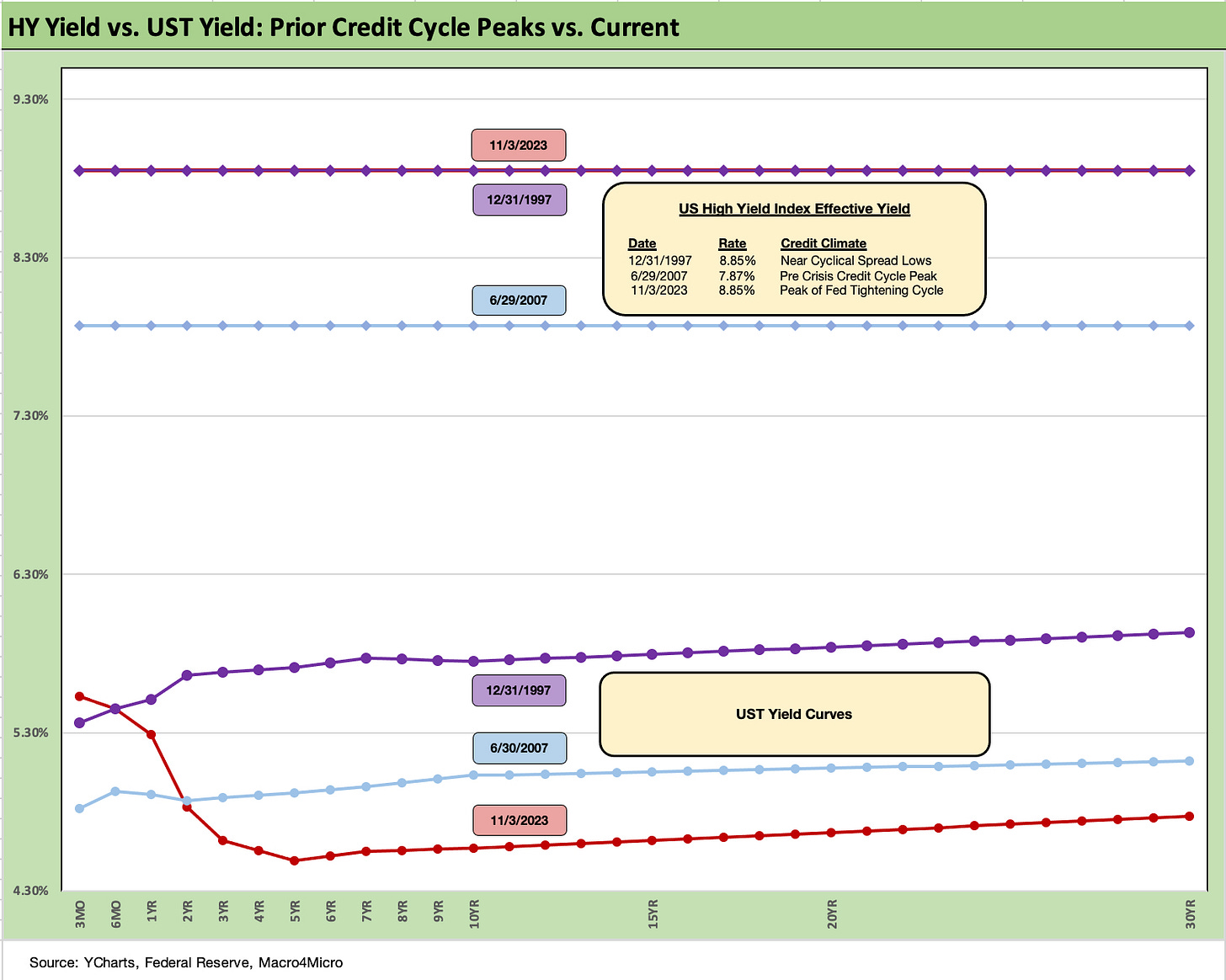 The fundamentals have been in aggregate solid and 3Q23 earnings season is not signaling worry in the immediate context of spreads. The HY spread rally in the face of a modest shortfall in job adds (to a still record payroll count) seems more about the dynamics of light supply than a fundamental trigger or compelling value. The forward expectation handicapping continues, but this is a very different HY cycle than past downturns with the UST curve and inflation handicapping driving so much of the risk pricing reactions in a BB heavy market.