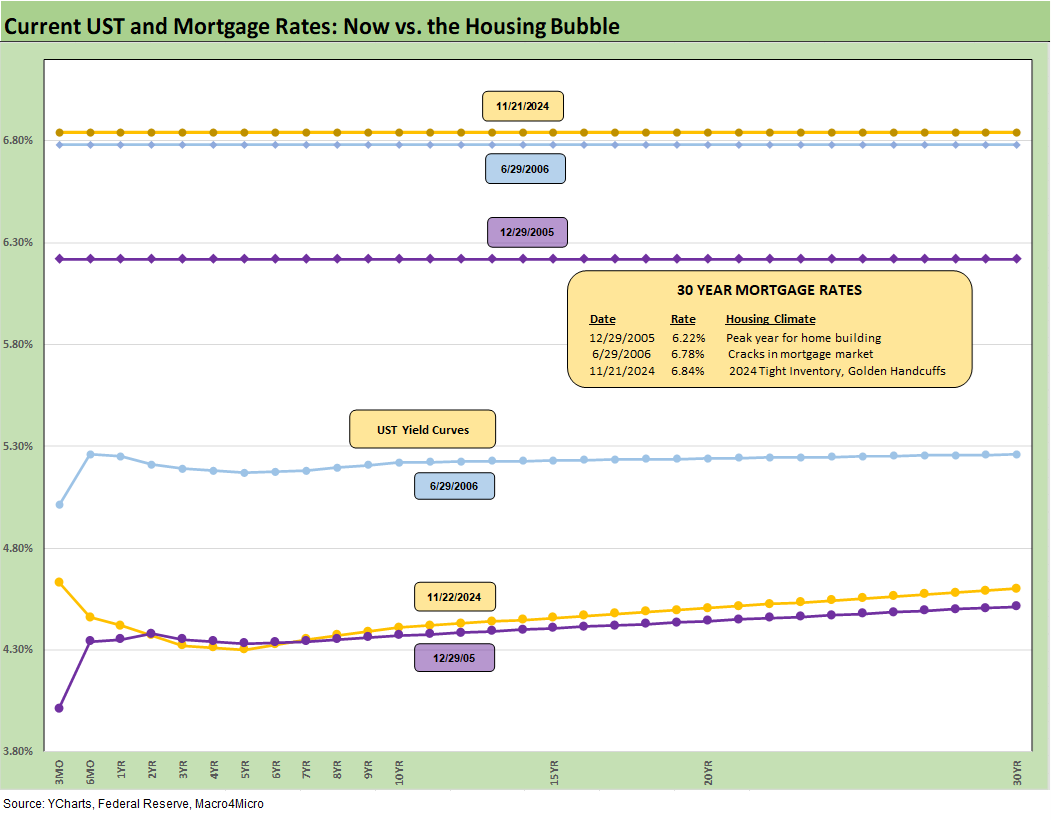We already looked at the time series for the 10Y UST and how it flowed into the Freddie Mac 30Y Mortgage benchmark in the Mini Market Lookback: Market Delinks from Appointment Chaos… For Now (11-23-24). The Freddie Mac 30Y rate ticked up to 6.84% this week from 6.78% last week. That is a hefty rise from late Sept when it hit 6.08% (see Footnotes & Flashbacks: State of Yields 9-29-24). Away from the Freddie Mac benchmark, there are plenty of 7.0% quotes.