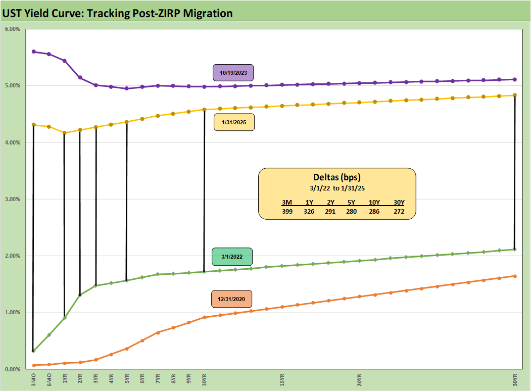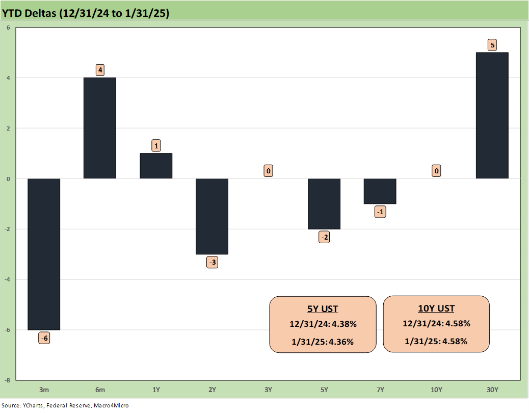 The YTD UST deltas are mild to this point after a very tough Dec and 4Q24 volatility that hit bond funds and roiled the UST markets as we detail further below.
