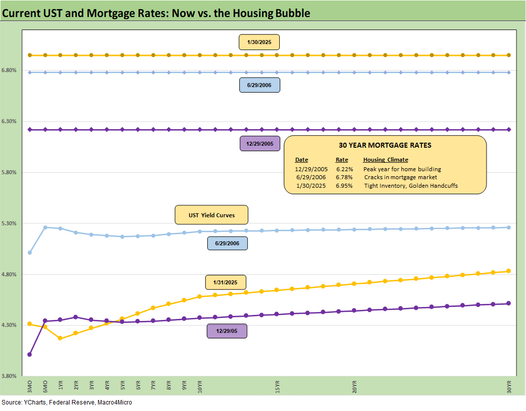 The above chart updates the Freddie Mac 30Y Mortgage benchmark (horizontal lines) and UST curves for the Friday close. We use two useful historical “macro comps” including the peak homebuilding year of 2005 (12-31-05) and mid-2006 period as the RMBS excess was starting to show signs of serious erosion.