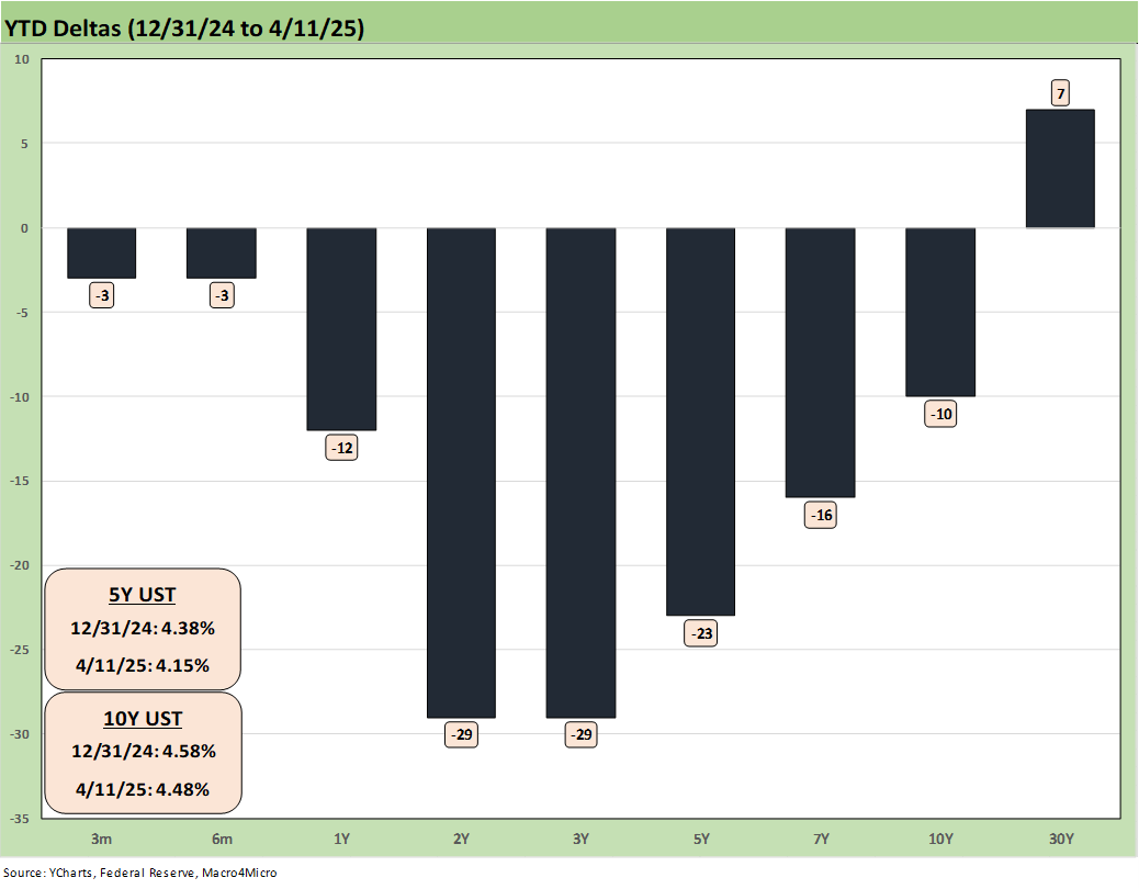 The above chart updates the YTD UST deltas that still show a bull steepening (despite the 30Y uptick) and helped bonds outperform for the rolling 3 months while equities were slapped around (see Footnotes & Flashbacks: Asset Returns 4-12-25).