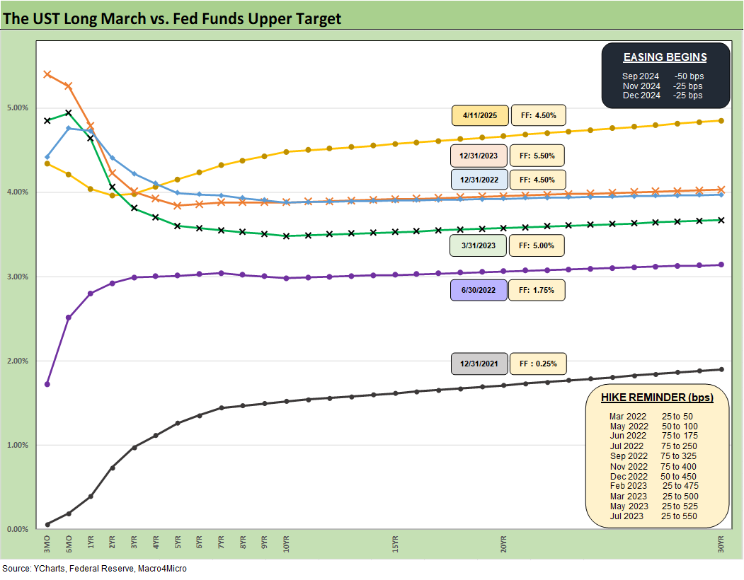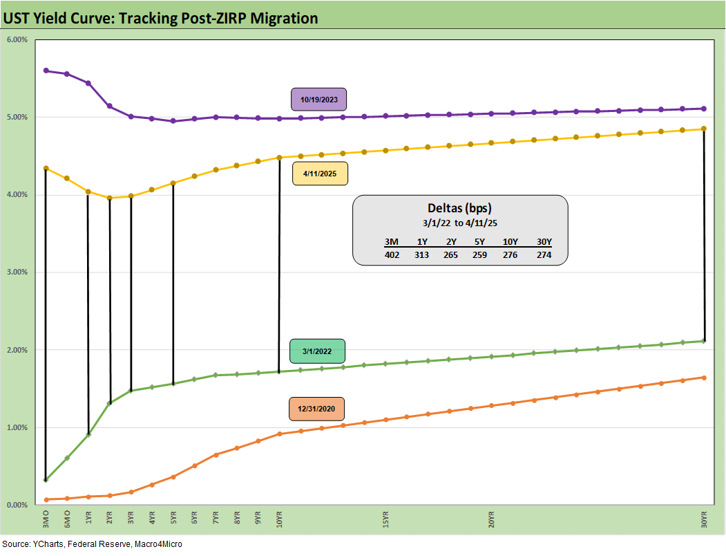 We wrap this week’s State of Yields with an update of the running UST deltas since March 1, 2022 just ahead of the end of ZIRP (effective 3-17-22). We include the 12-31-20 UST curve and 10-19-23 peak UST curve as frames of reference.