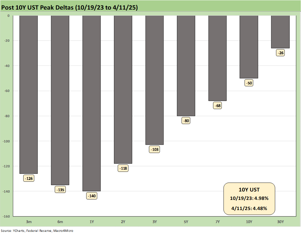 We update the post-peak (10-19-23) UST deltas above. When we consider a threat from higher rates now, just remember we started this process just under a 5.0% 10Y UST level in Oct 2023.