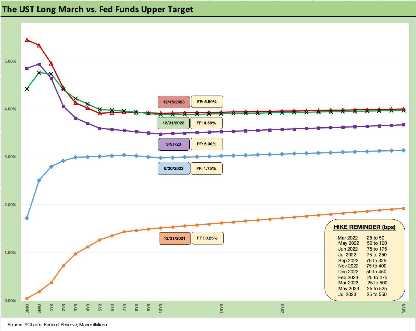 As noted in the above chart, the UST curve is essentially back on top of the year end 2022 UST curve except for the front end. As always, the Fed sets the short end of the curve, and the market determines how the longer end shapes up.