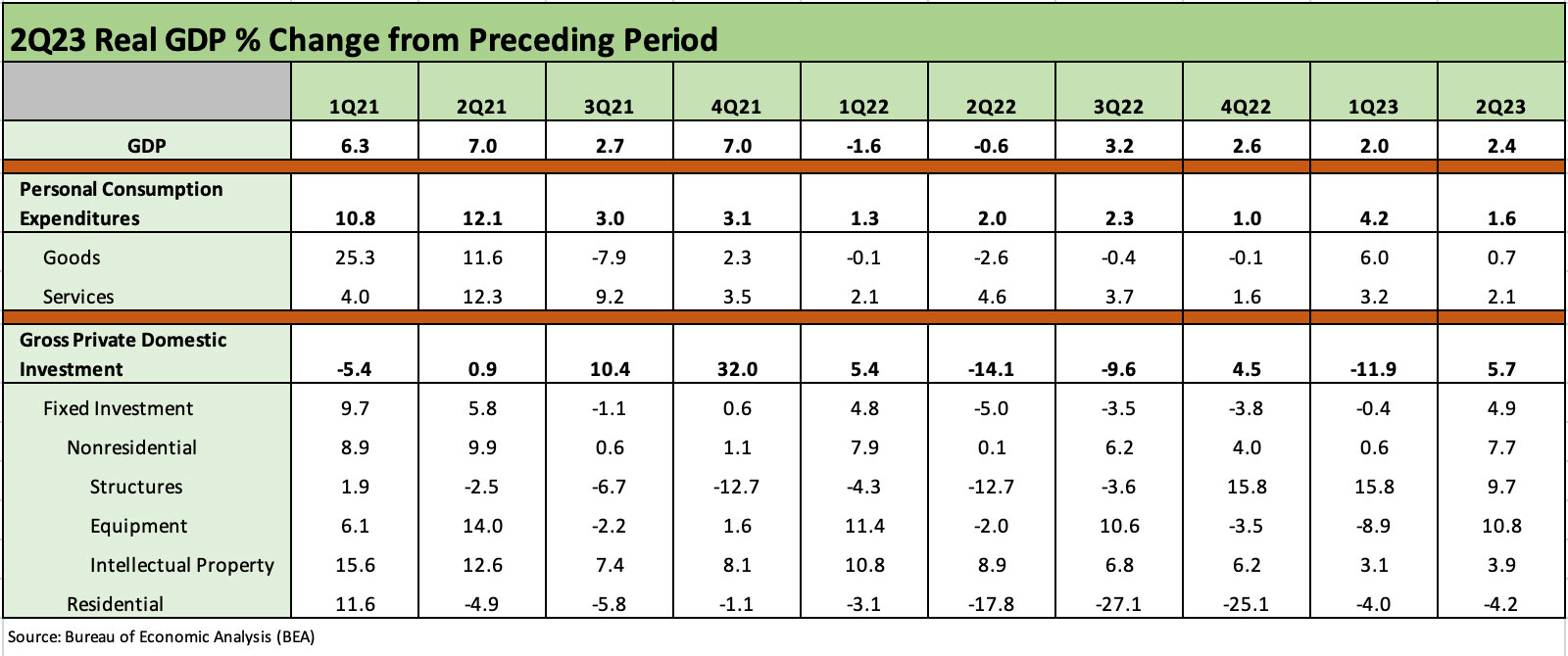 We look at a 2Q23 GDP number that posts broadly positive numbers across PCE and Fixed Asset Investment categories.