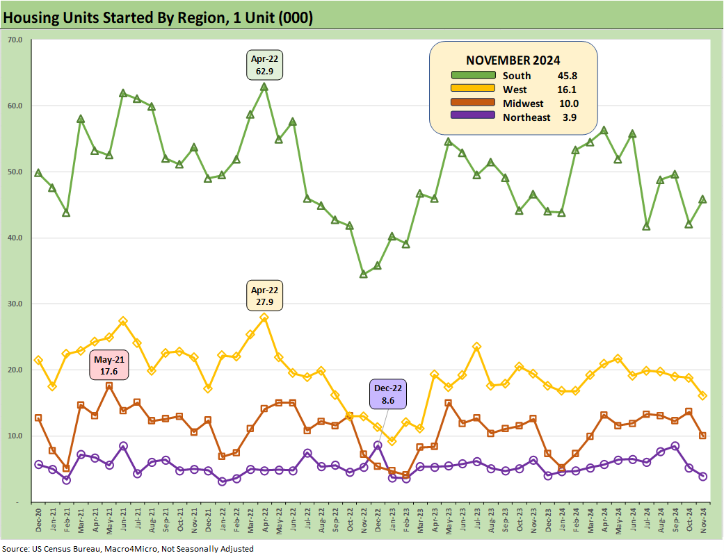 Nov 2024 shows an uptick from Oct in single family MoM (+6.4%) but material declines YoY for 3 of 4 regions. The critical South region was only slightly lower YoY with a major sequential rise of over 18%.