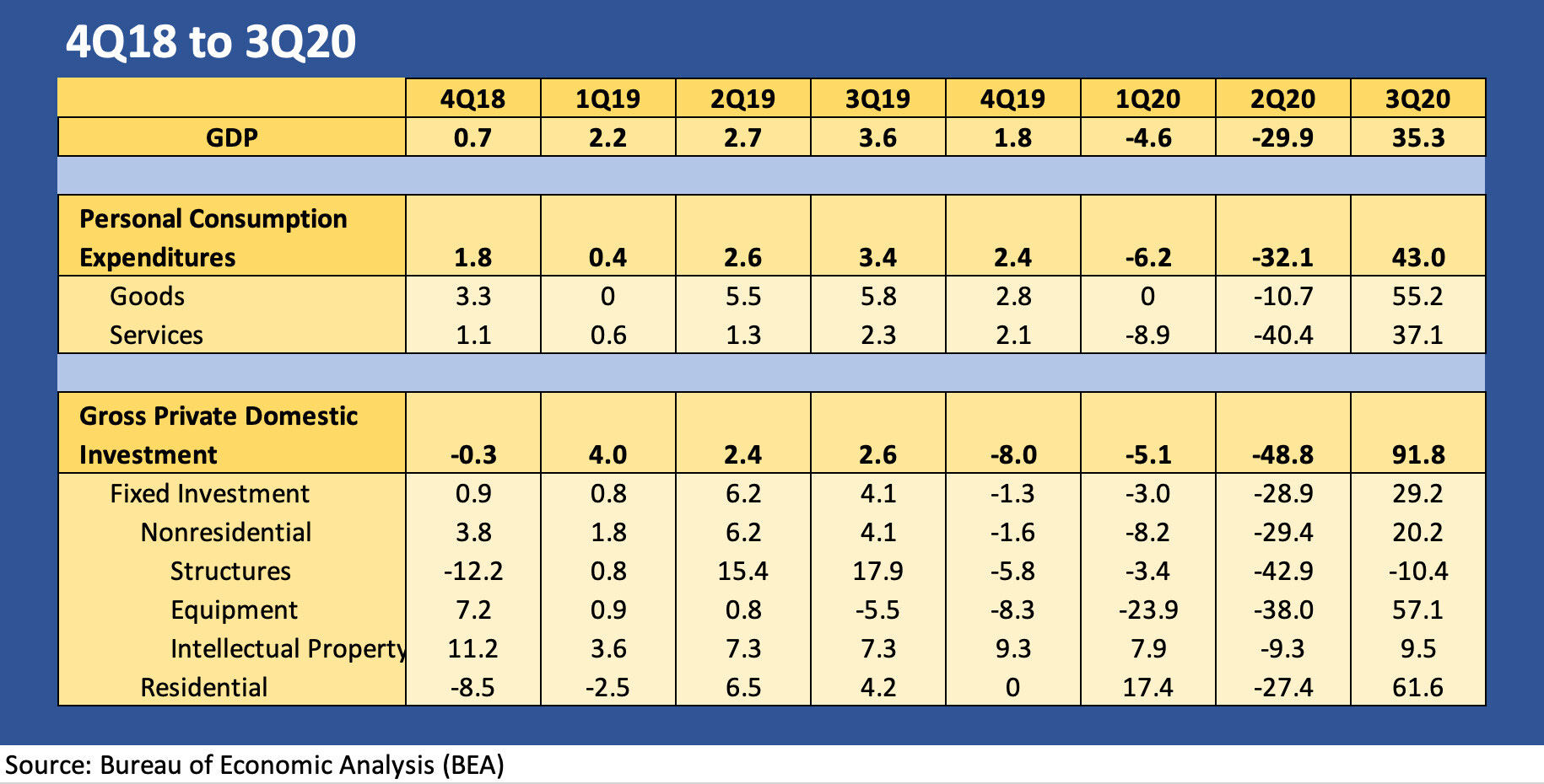 GPDI dropped by almost 49% in 2Q20. Panic from the consumer sector to the manufacturing chain was rampant. Offices emptied out, lease defaults loomed, and mortgage defaults needed government intervention. It seems like an old story now, but the ability to spin dire scenarios and domino effects was not hard. The fiscal support combined with a very activist Fed-UST tag team (Powell-Mnuchin) arguably kept the credit market wide open and restored confidence quickly for a massive refi and extension wave in mortgages and corporate debt.
