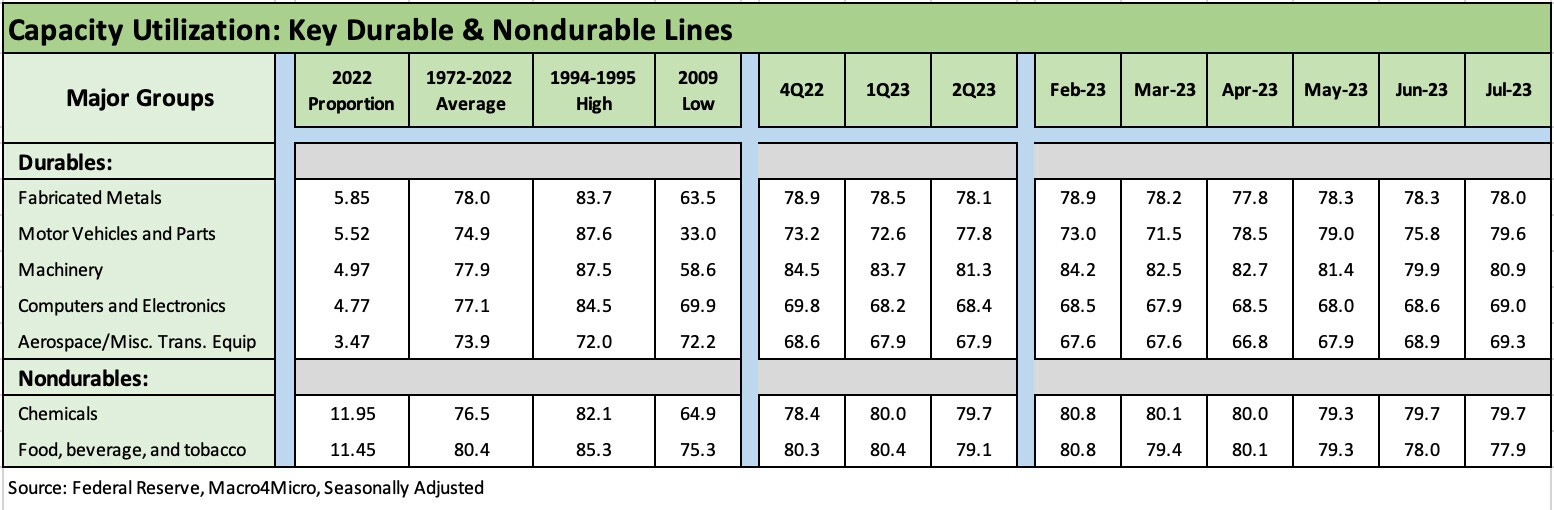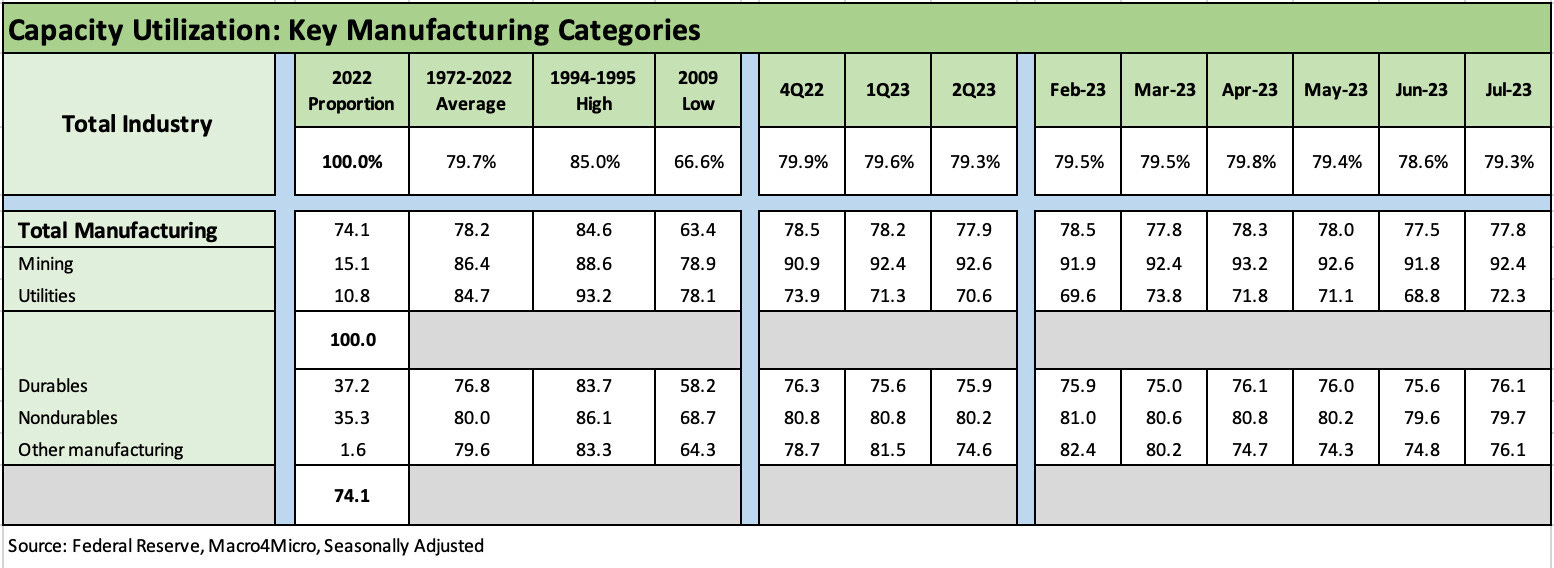 Industrial Production, Capacity Utilization: A Mild Fade 7-18-23