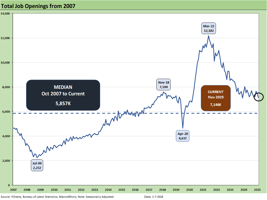 The 4.1% move lower in job openings to 7.146 million from 7.45 million amounts to a sharp -11.0% decline from Nov 2024, so that clearly is an unfavorable trend. The private sector was down by -214K with Government down by -89K or by -11.4% MoM.