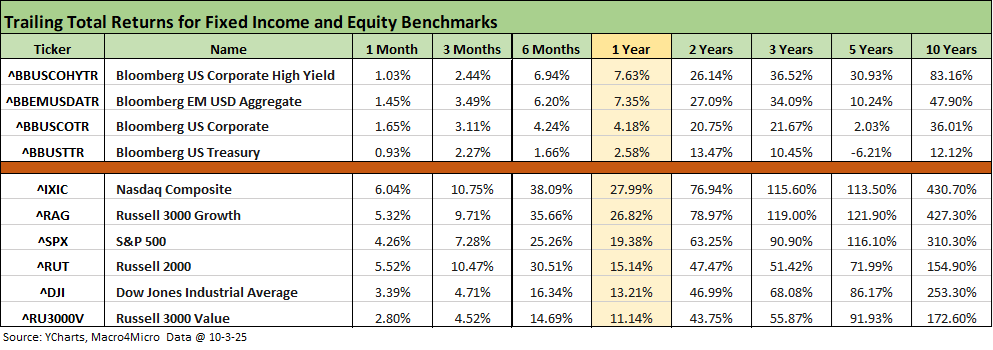 The S&P 500 LTM stands at 19.4% over 1-year (15.3% YTD 2025), so the S&P 500 will need to finish 2025 in impressive fashion to move from 15% to 25% for the year to match the 2024 and 2023 S&P 500 returns. It is doable, but it needs good news.