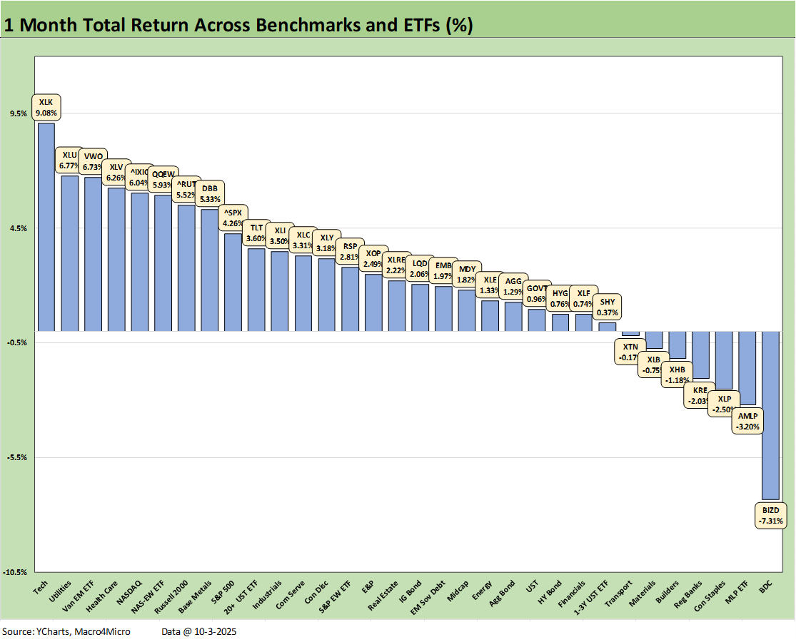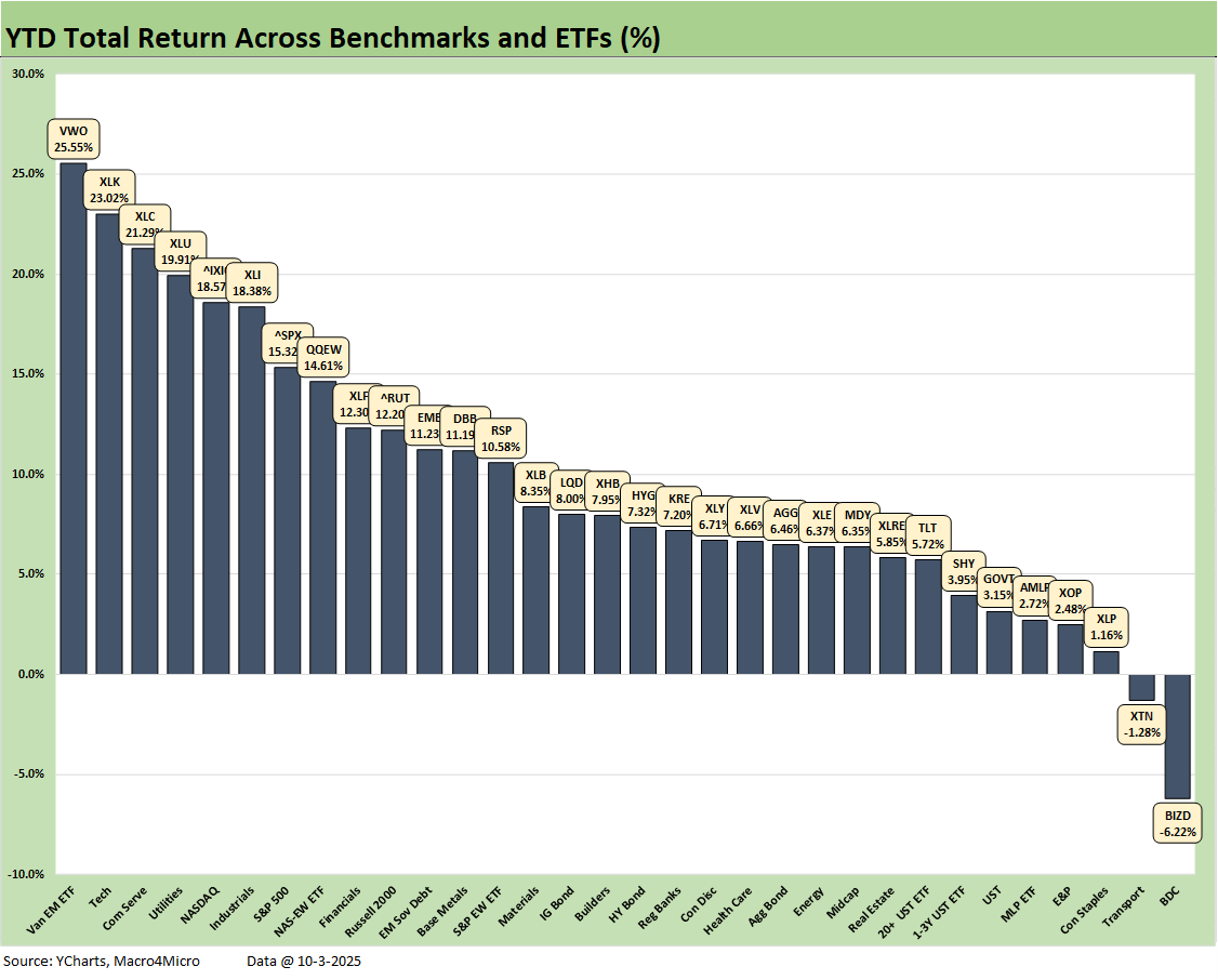 There is not much mystery in the YTD performance with the score at 30-2 despite tariffs, a weak dollar, political chaos (now a shutdown), slower personal consumption expenditures and mixed investment in the GDP accounts. The material disparities around who is spending and who is stretched to the limit even before the heath care premium hikes will be something to monitor.