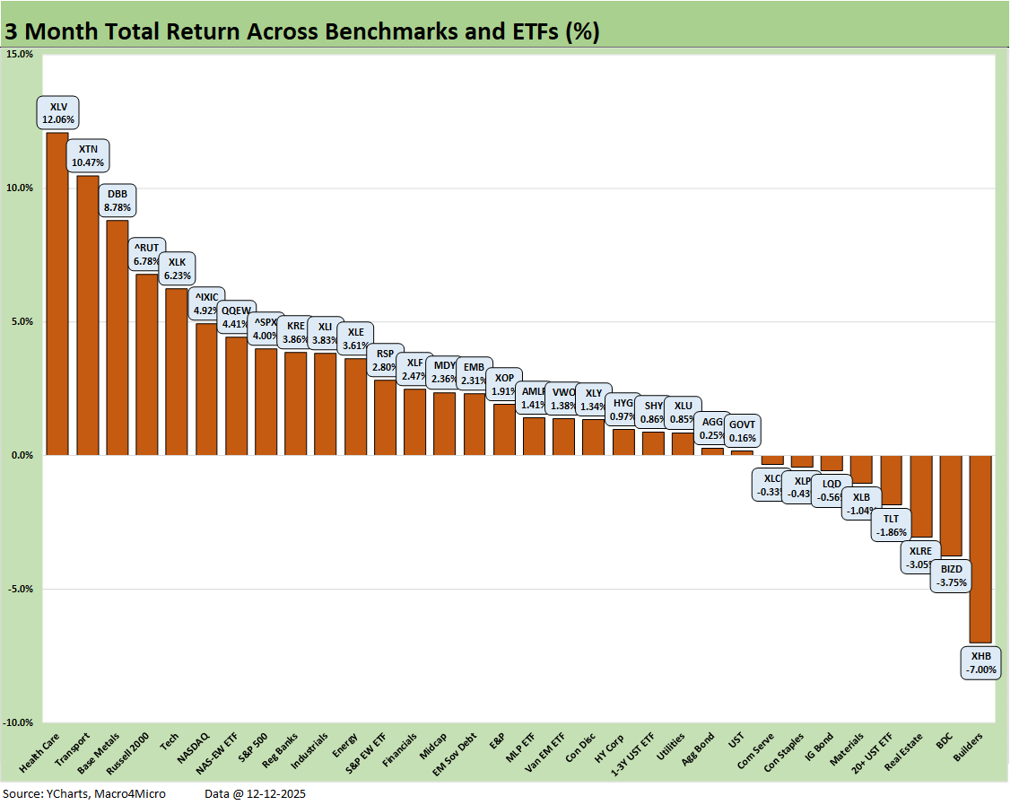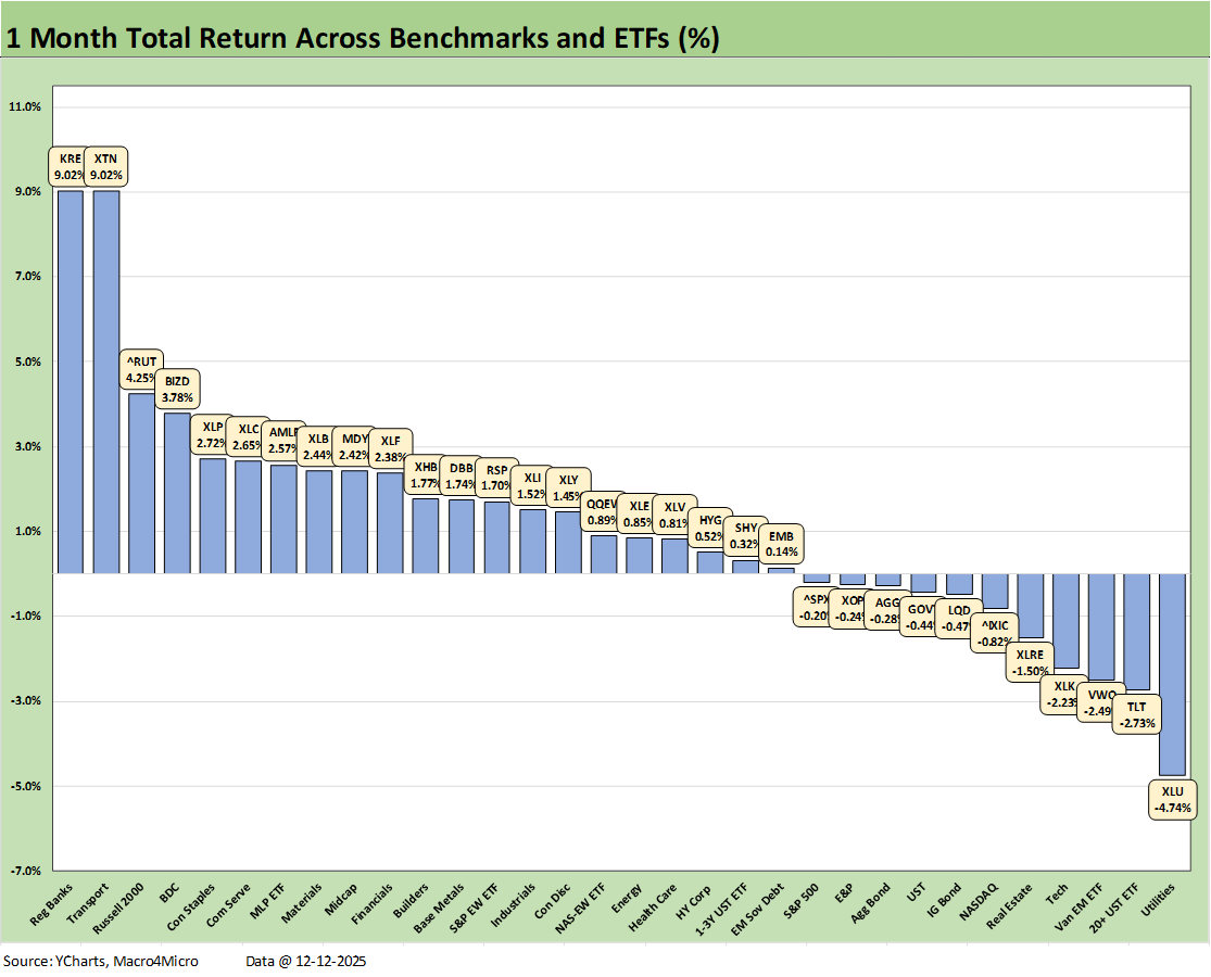 We already looked at the 1-week returns in our Market Lookback: FOMC Fragments, Rate Debates Murky (12-13-25). The 13-19 score for positive vs. negative included 6 bond ETFs in the red zone with the short UST ETF (SHY) barely positive.