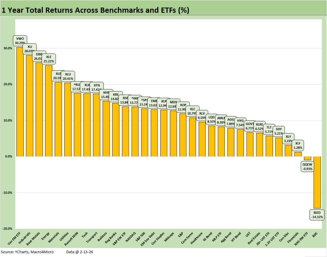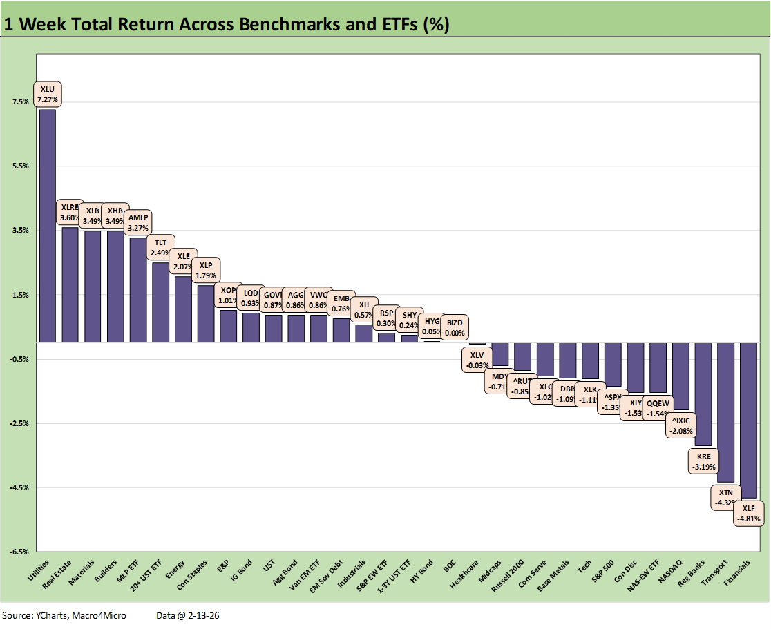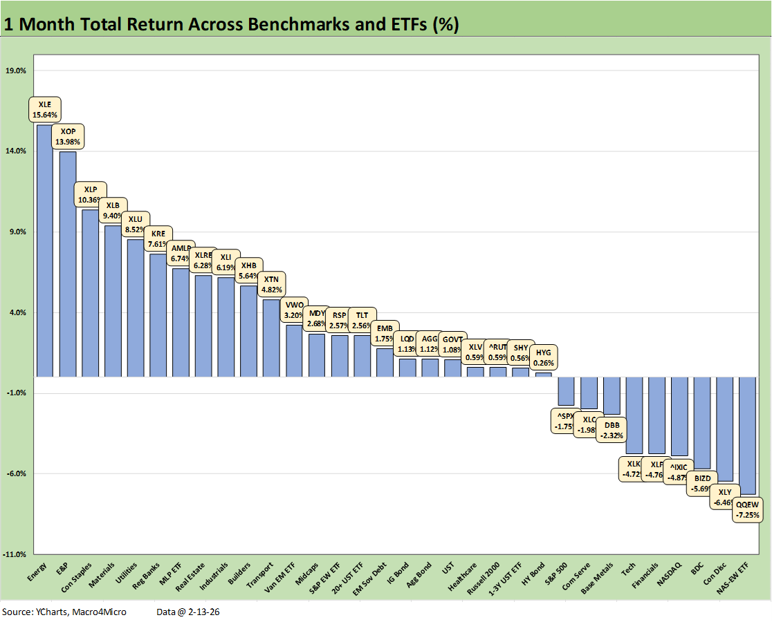 For the month, all the bond ETFs are positive with HYG only slightly so on credit spread widening. The UST move was supportive this week, and the strong 4Q25 earnings season should be offering some comfort to the upper HY credit tiers, medium grade layers, and higher quality credit tiers. The high grade tiers will be facing some supply tests with the sheer volume of tech issuance to fund capex during a period when tech equities have been volatile.