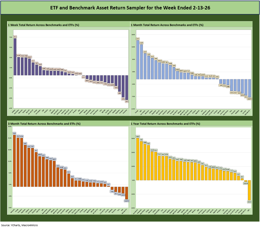 We looked at the trailing 1-week returns for the 32 benchmark and ETFs we monitor each week in a commentary we posted on LinkedIn earlier today. This is a cut and paste of that note: