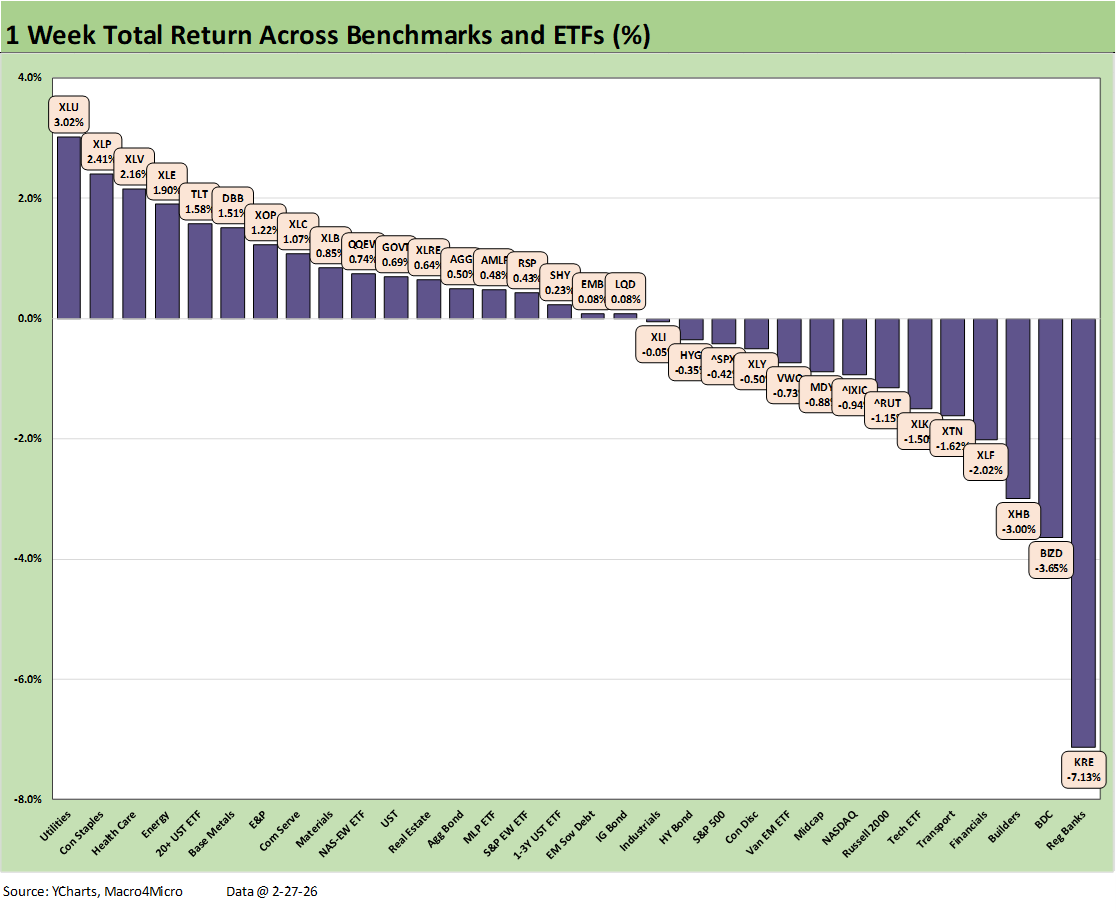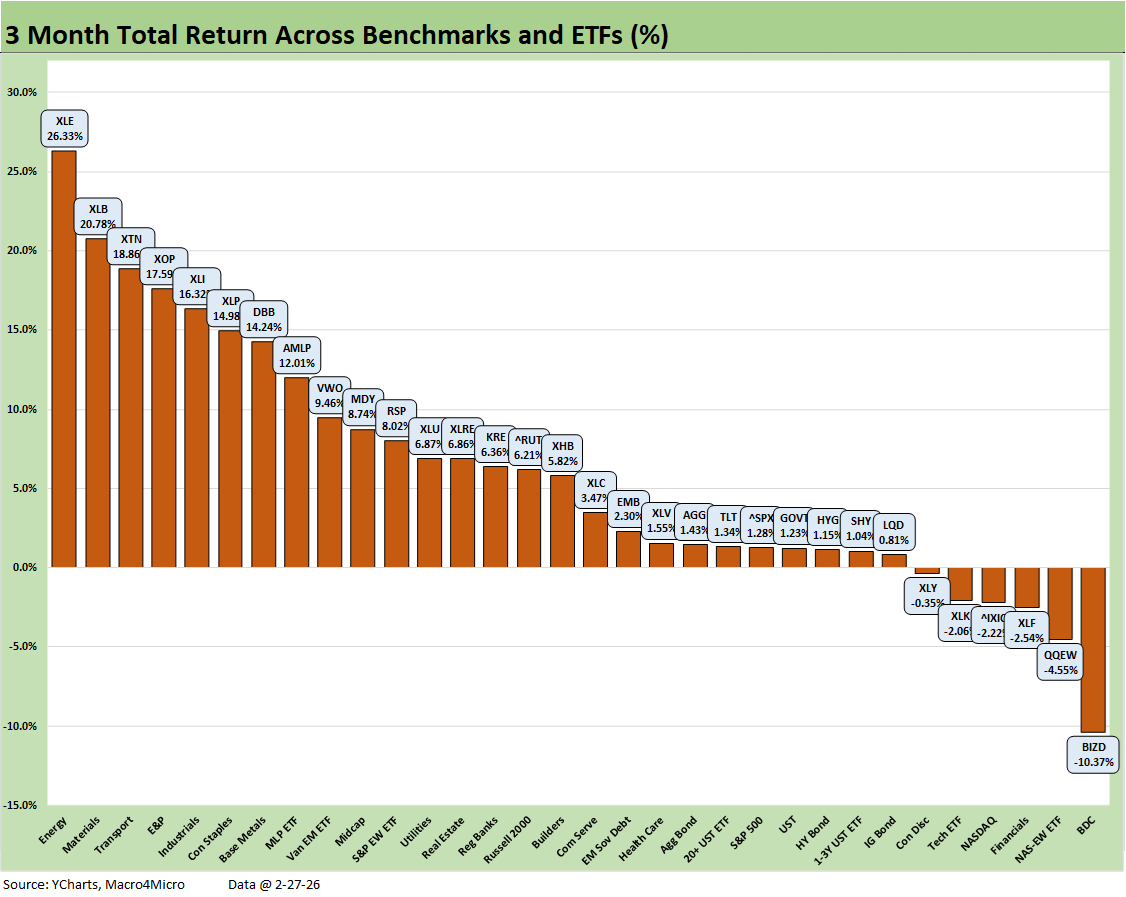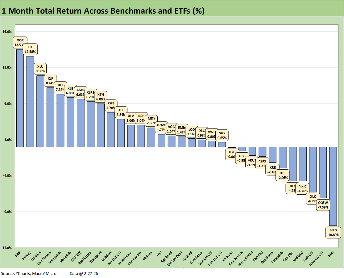 The 1-month timeline for the 32 benchmarks and ETFs weighed in with a 21-11 score, so that is a good story line considering the disarray in tech. When we factor in slower GDP growth in 4Q25 and higher PCE inflation, that also reminds us how resilient the market has been. That could (should) change quickly this week with Iran events.