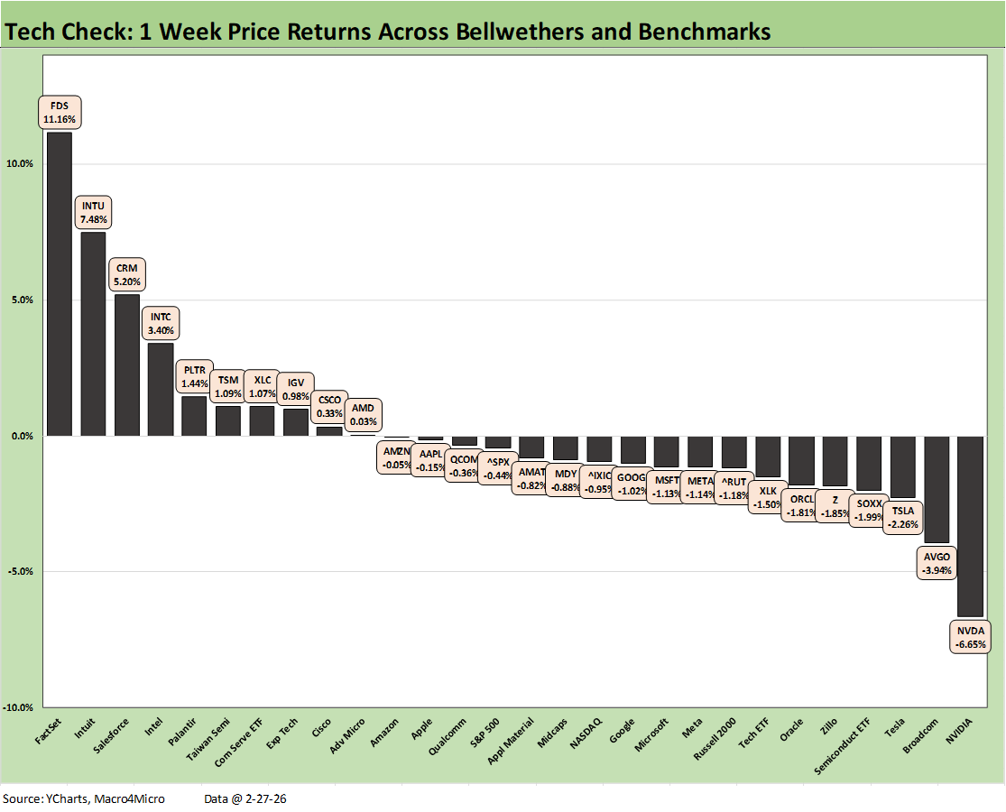 The tech volatility calmed down somewhat this past week in terms of the SaaS-centric business services sell-off, but banner earnings from NVIDIA did not calm the valuation nerves in AI and the related family tree of tech subsectors.