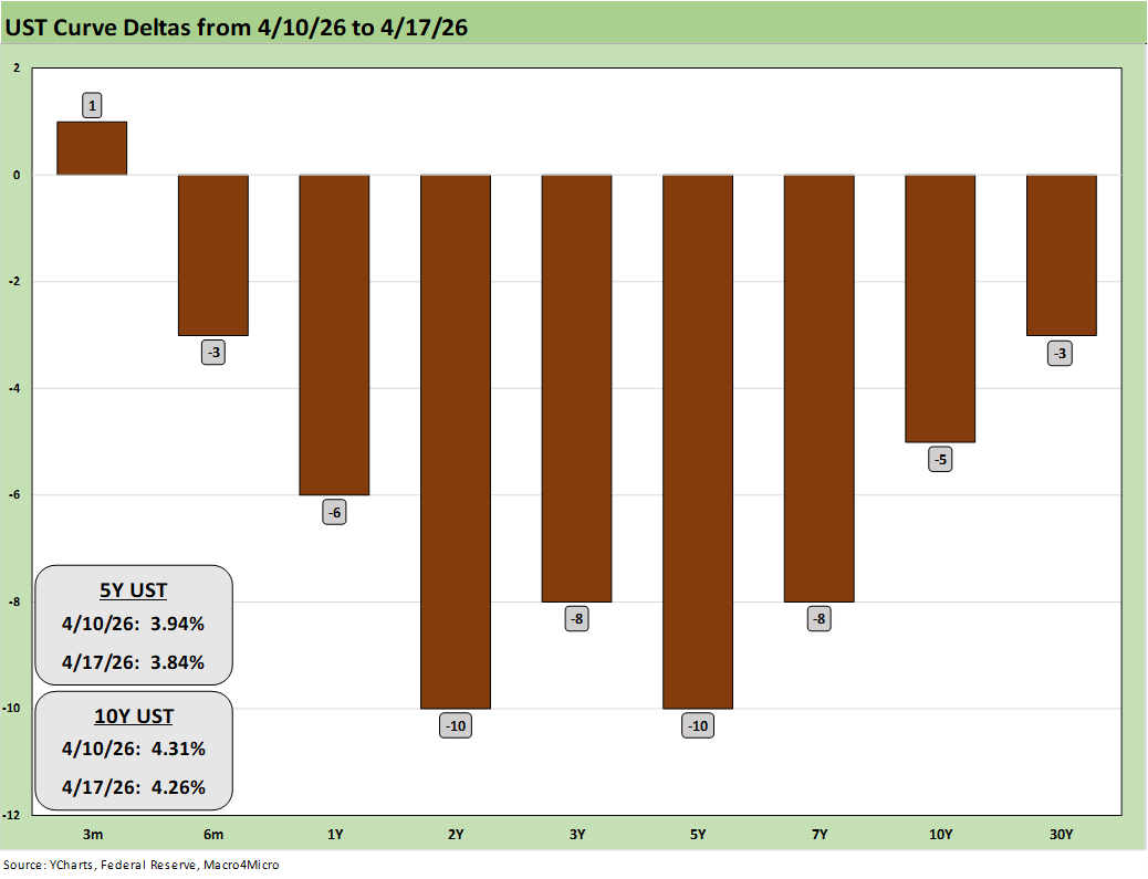 We will see this week how oil reacts and flows into curve risk as negotiations resume and misinformation flows freely. The UST rally from 2Y to 10Y that we see above helped all the bond ETFs post positive returns this week. We see another FOMC meeting later this month, and that seems far away given the Iran backdrop.