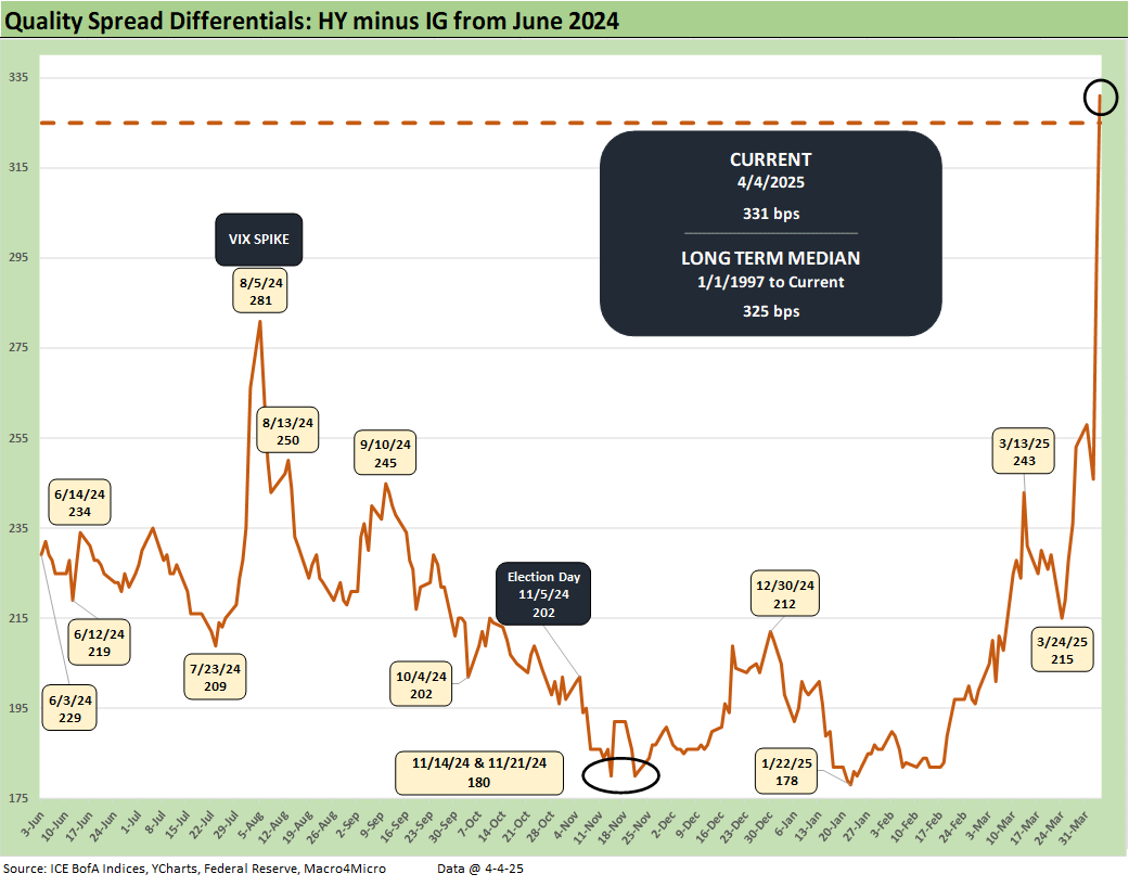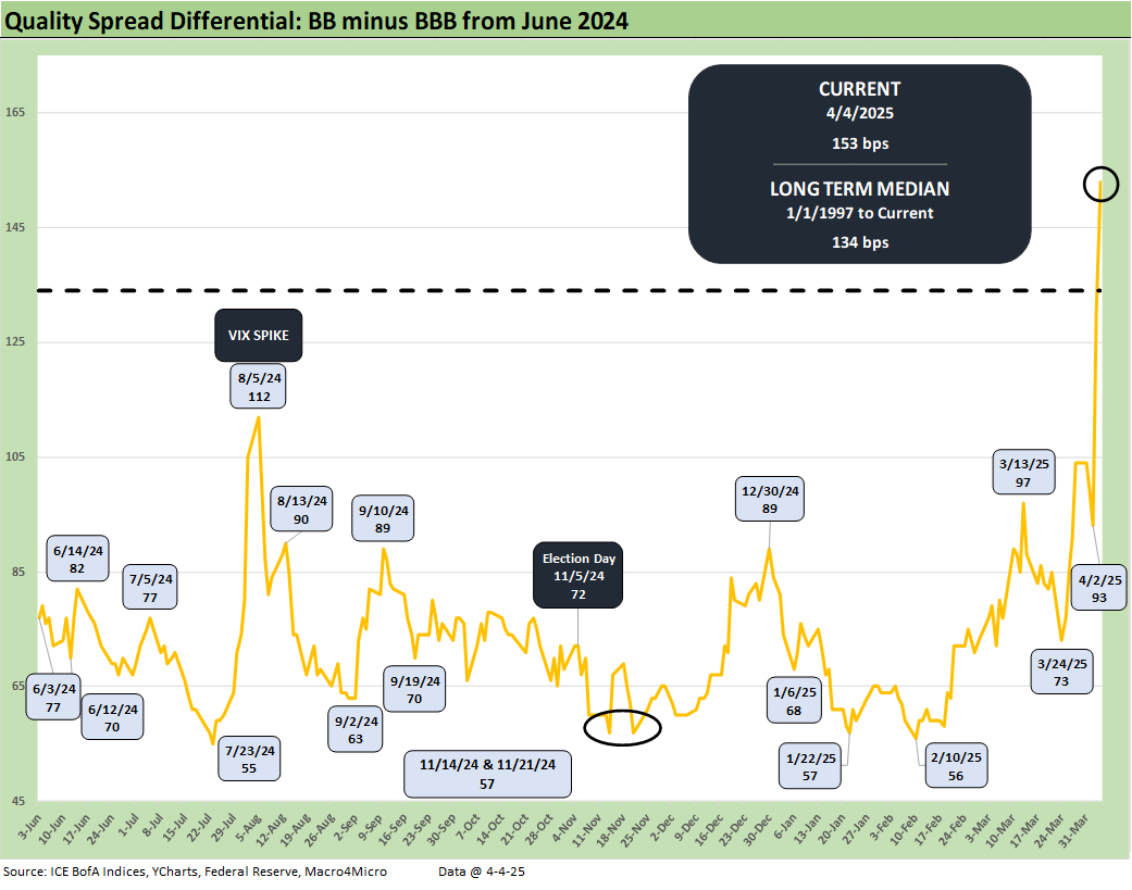 The “BB OAS minus BBB OAS” quality spread differential has also spiked from +104 bps last week to +153 bps to end this past week. That gap has more the doubled off the 1Q 2025 lows and is comfortably wide to the median of +134 bps.