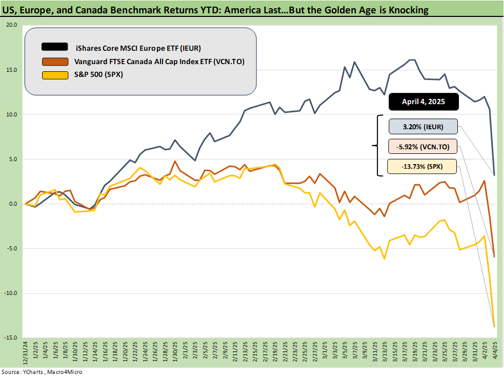 The above plots broad equity benchmarks and market proxy ETFs for the US, Europe, and Canada against one another YTD. If Trump’s plan was to go hard after Europe and Canada – the two that have been drawing his angriest, arguably personal comments for months – then US vs. EU vs. Canada will remain a head-to-head comparison. We will update this one regularly just to keep the thought process running on how the markets see Trump’s game plan working out. So far, not so good….
