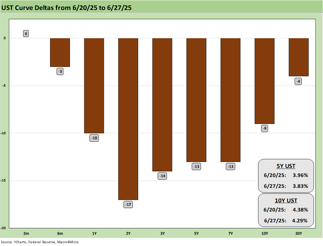 The above chart updates the 1-week UST deltas, and much of the focus has been on removing oil as an inflationary factor after the brief Iran bombing “interlude” as the Iran-Israel clash came to an end. That was after Iran’s air defenses were crushed by Israel ahead of the US bombing raid. Iran went back in retaliation hibernation as that threat awaits another time.