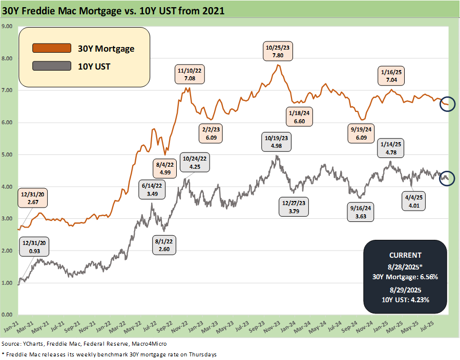 If Sept 2025 repeats the Sept 2024 experience with the UST curve and mortgages (a brief 6.0% handle) could make for some rapid decision making. The homebuilders also can generate a 5% handle with their mortgage incentives to move high inventory as we discussed on our housing sector work (see New Home Sales July 2025: Next Leg of the Fed Relay? 8-25-25).