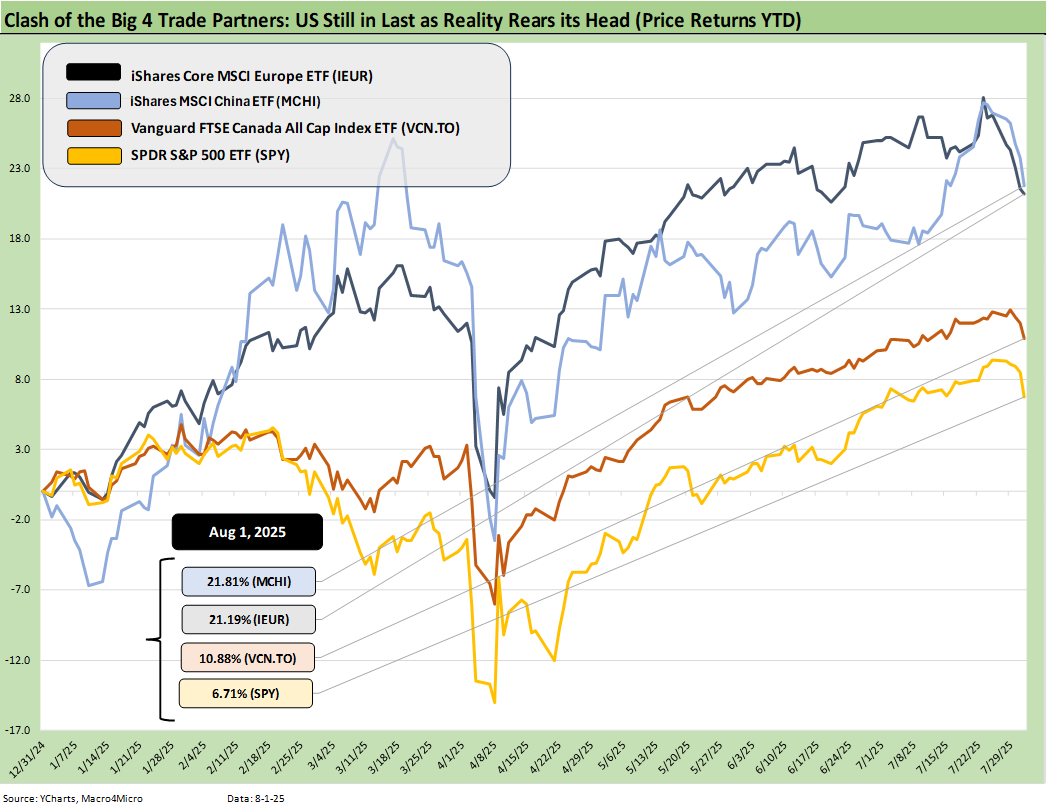 The above chart updates the running YTD returns for the Big 4 developed markets trade partners. We use the S&P 500 broad market ETF (SPY) for this purpose. We omit a Mexico benchmark from this chart given its Emerging Market status for many investors, but the Mexico ETF (EWW) would be at the top of this chart YTD.