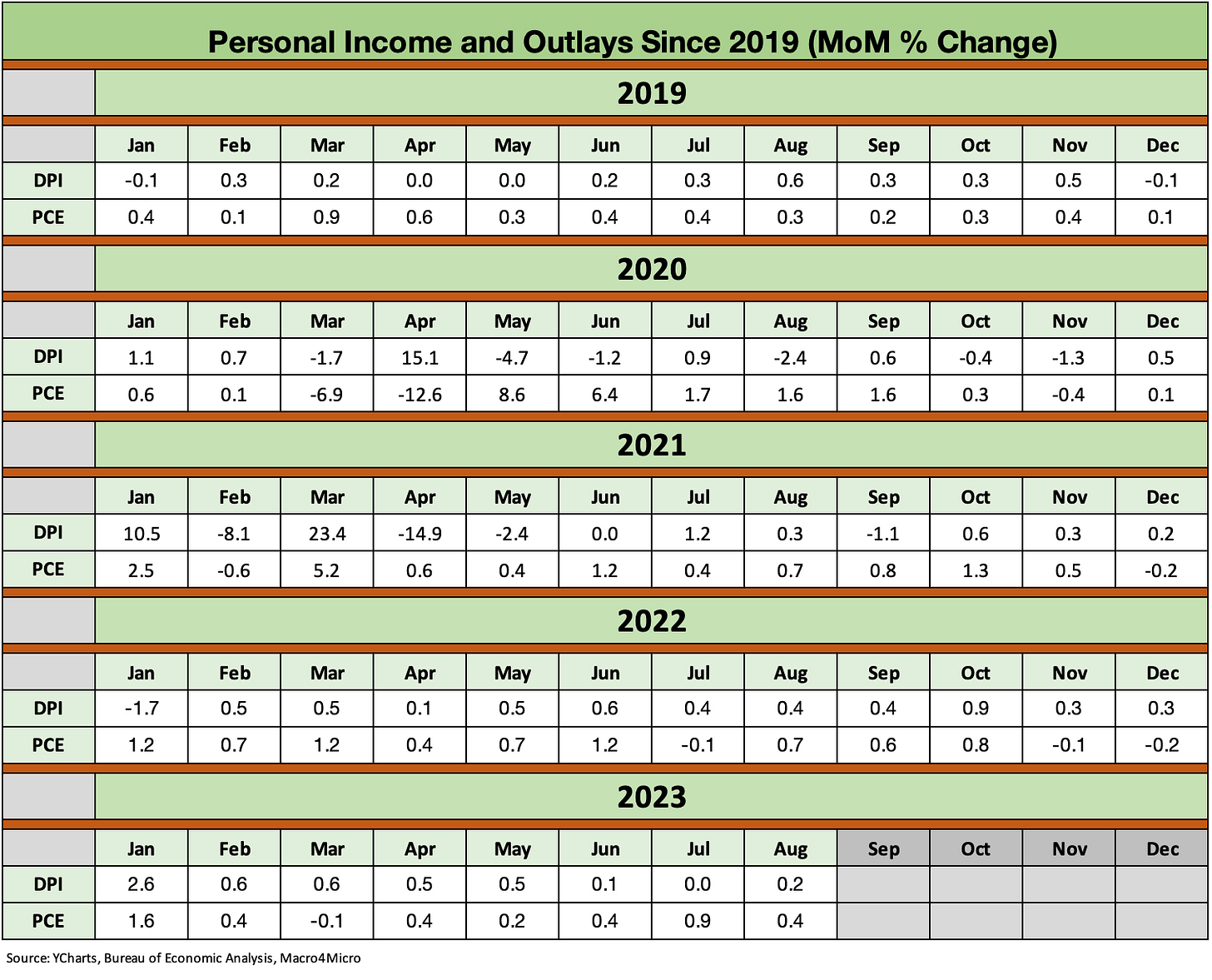 For other line items by category, there is a lot to look at, but a very quick review of PCE inflation, Personal Income, and Consumption trends give you the main flavor you need.