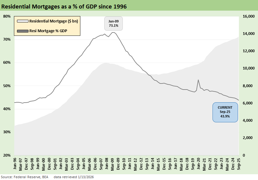 We update the systemic and gross dollar context for consumer debt and residential mortgages relative to GDP from the most recent Z.1 filing (3Q25) for a sense of scale.